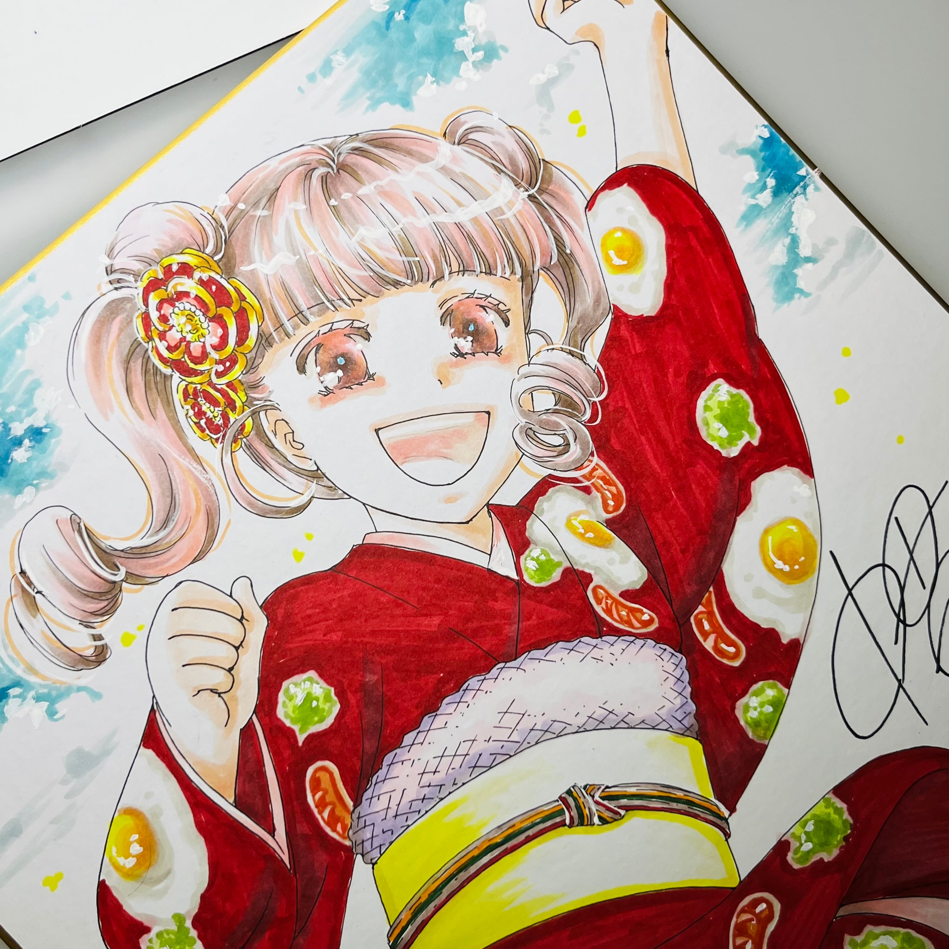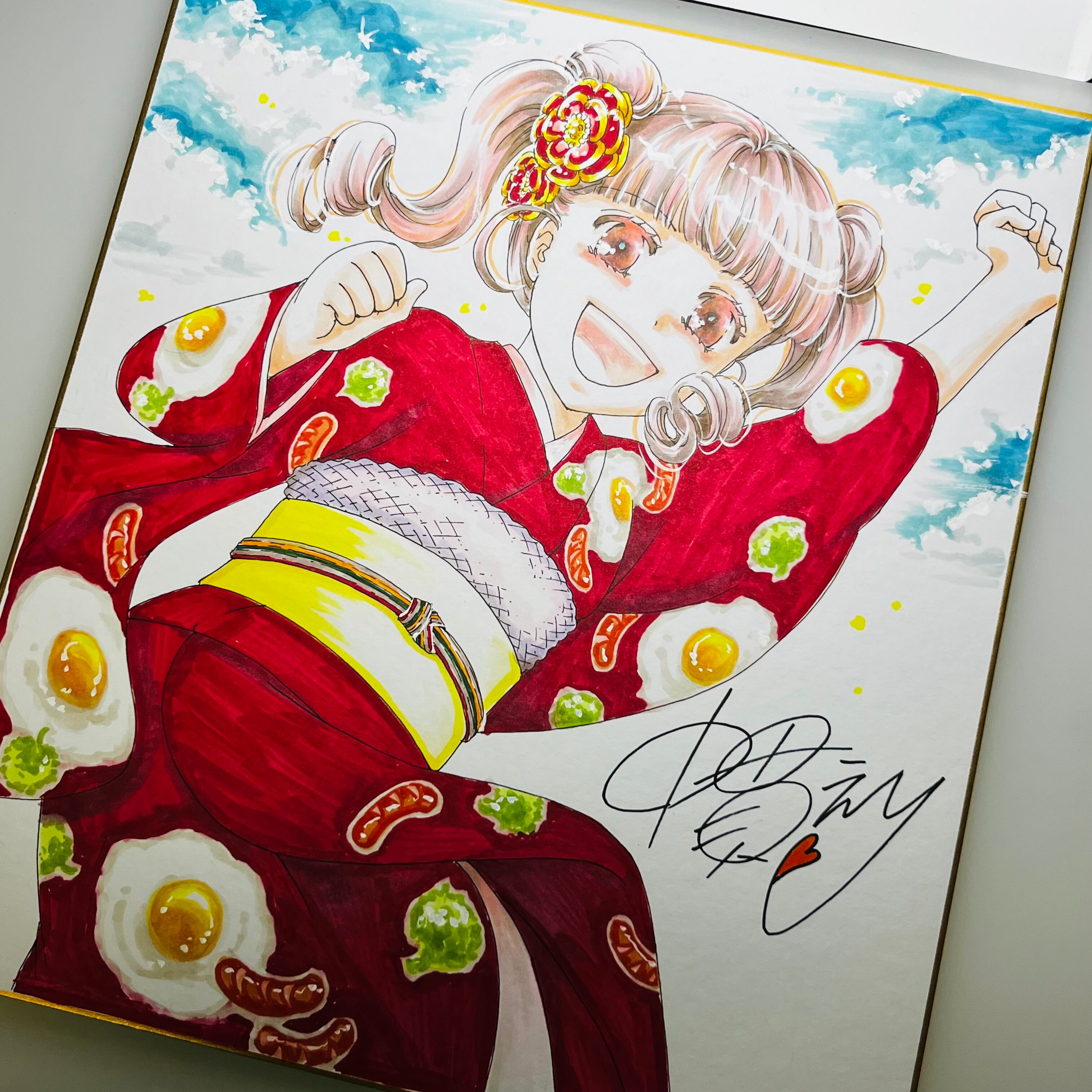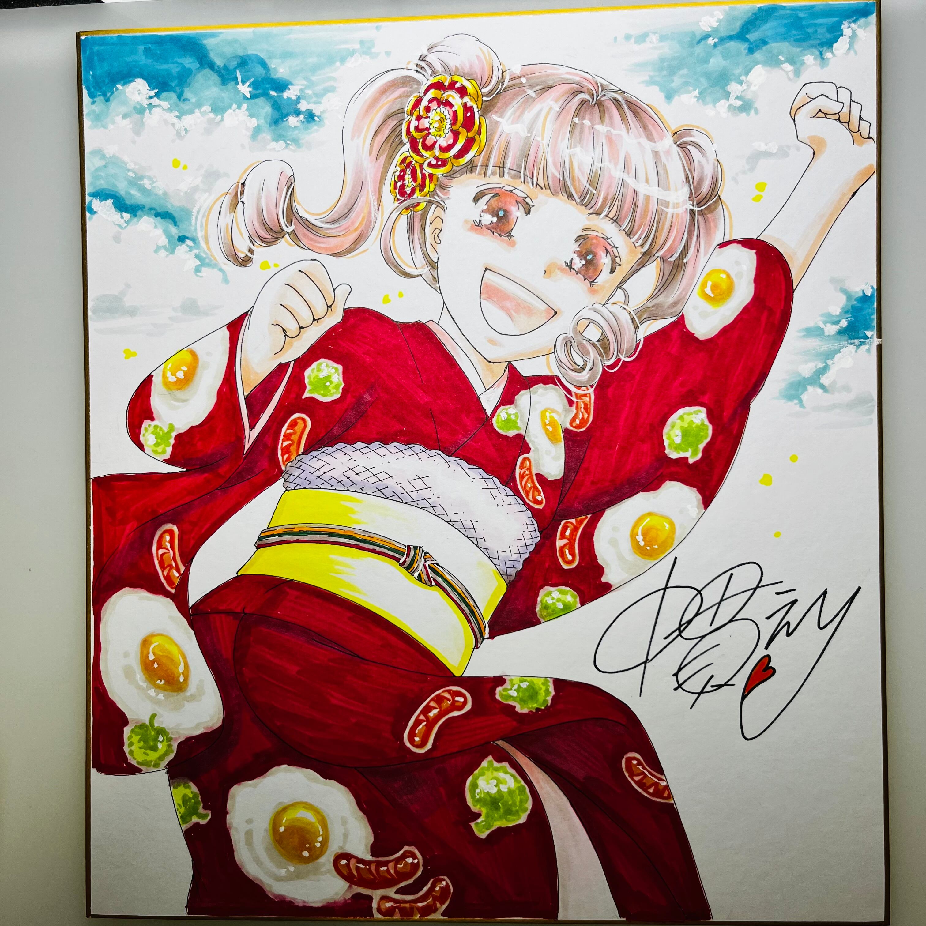 直筆イラスト色紙 麦子(目玉焼き)