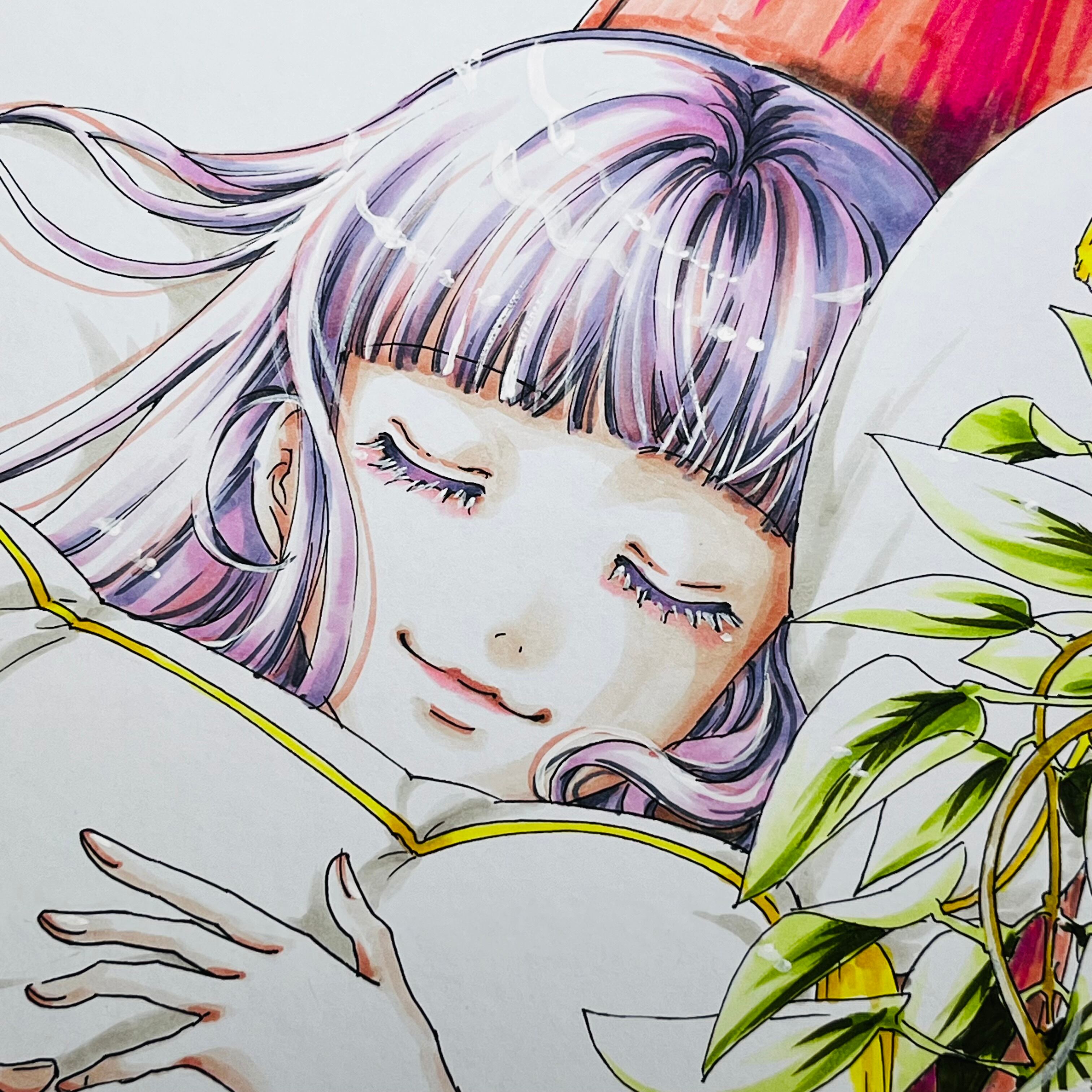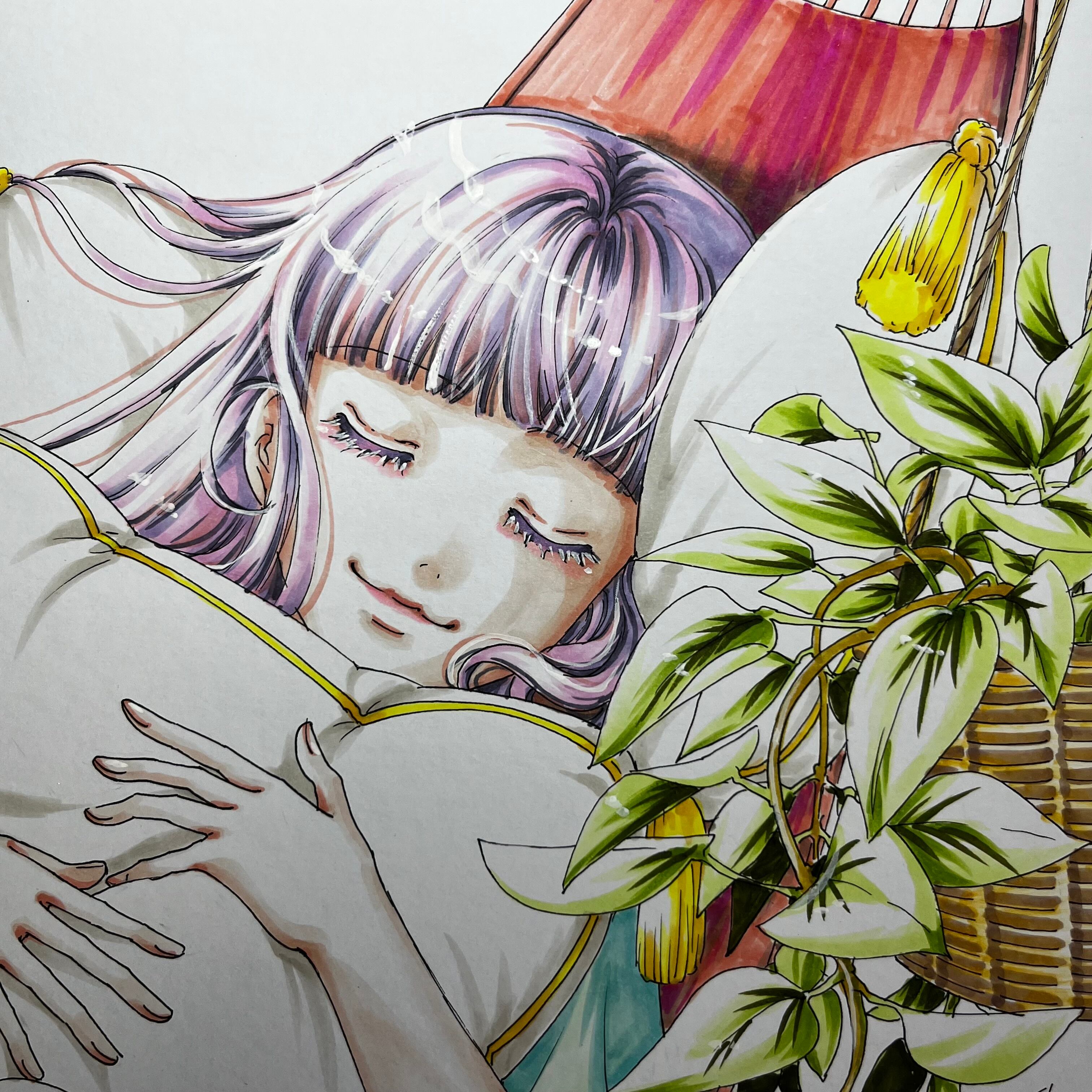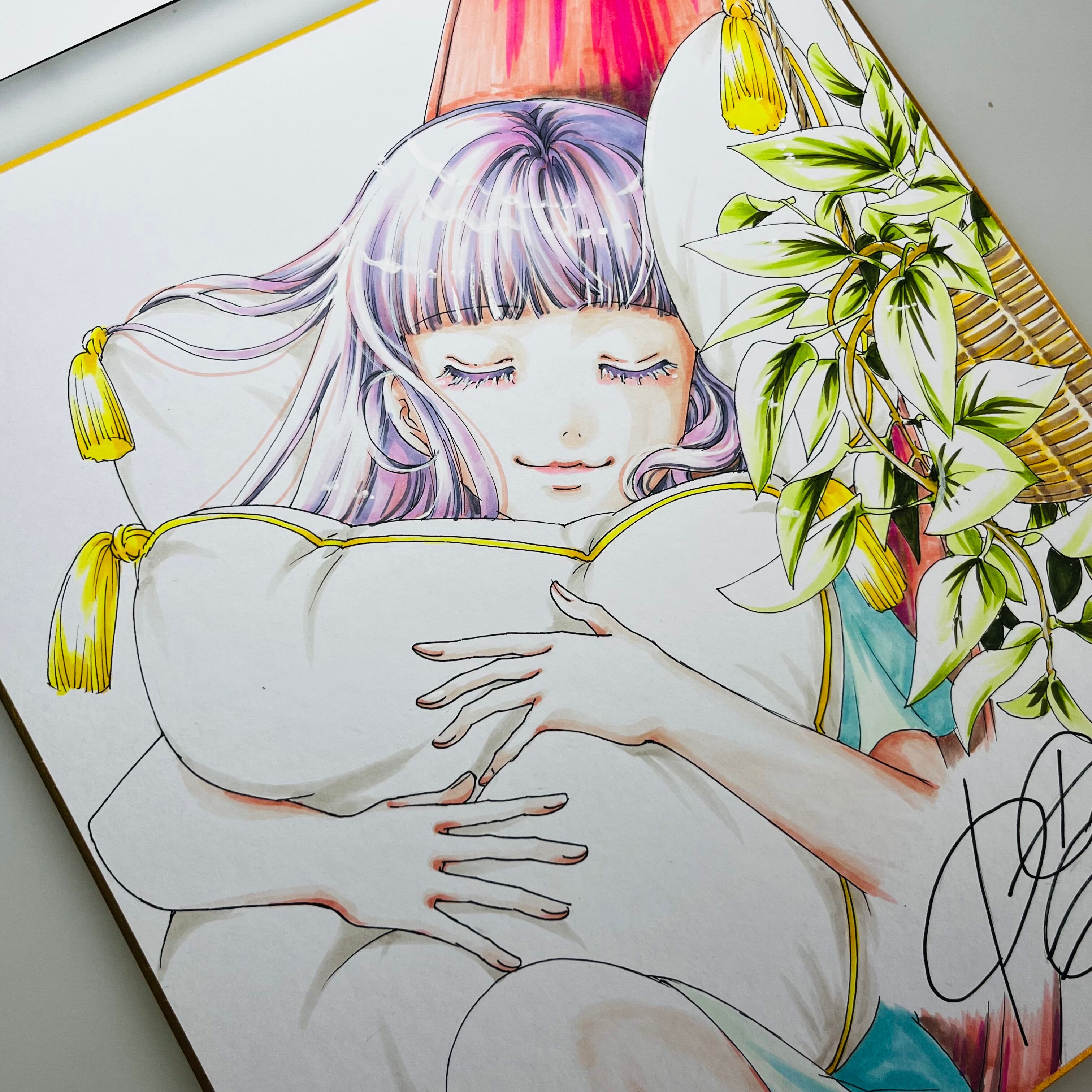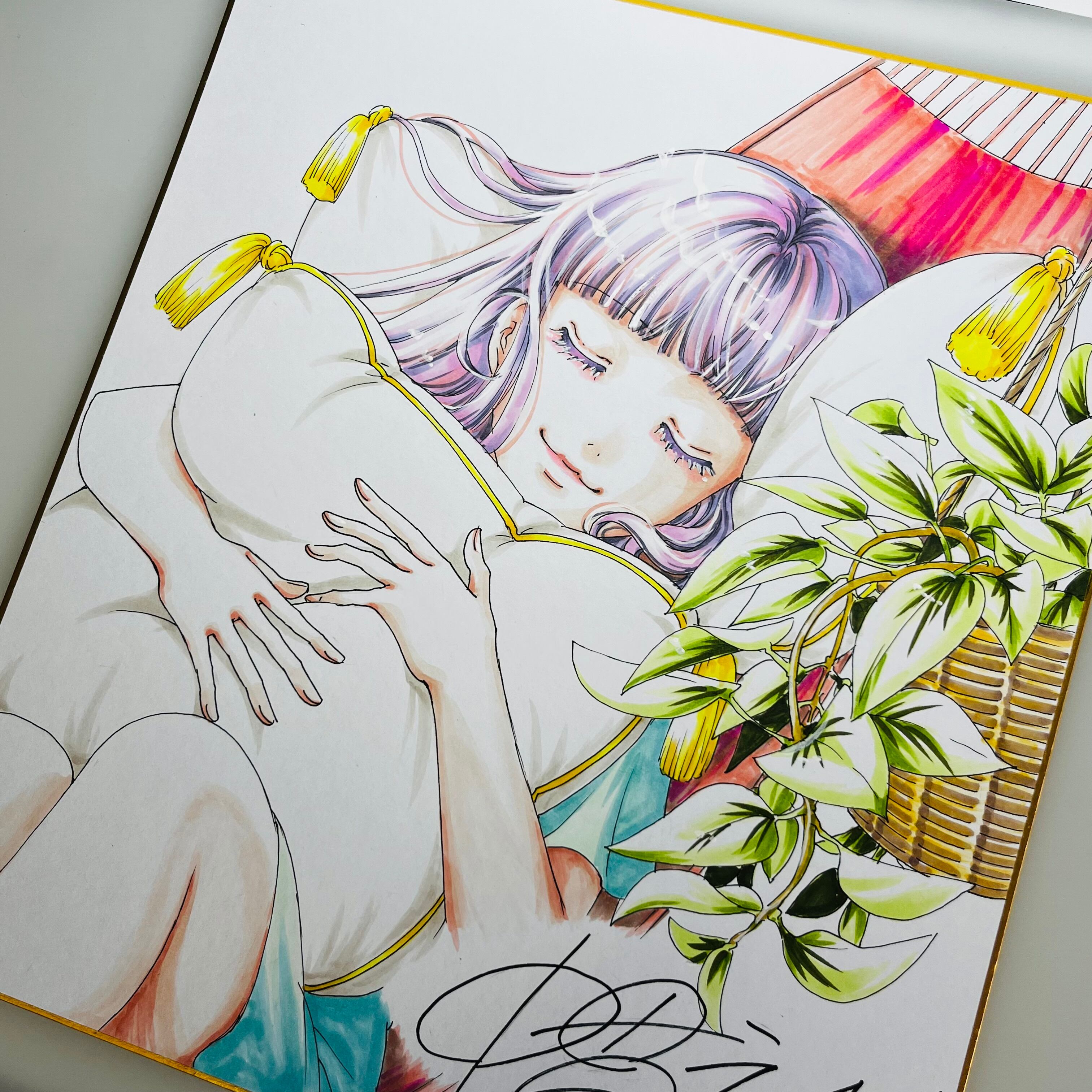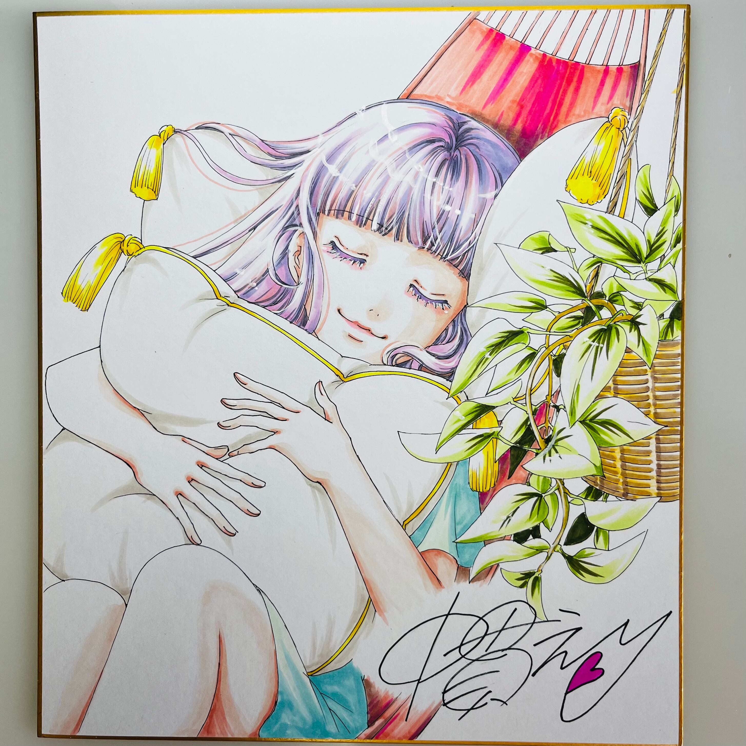 直筆イラスト色紙 麦子(昼寝)