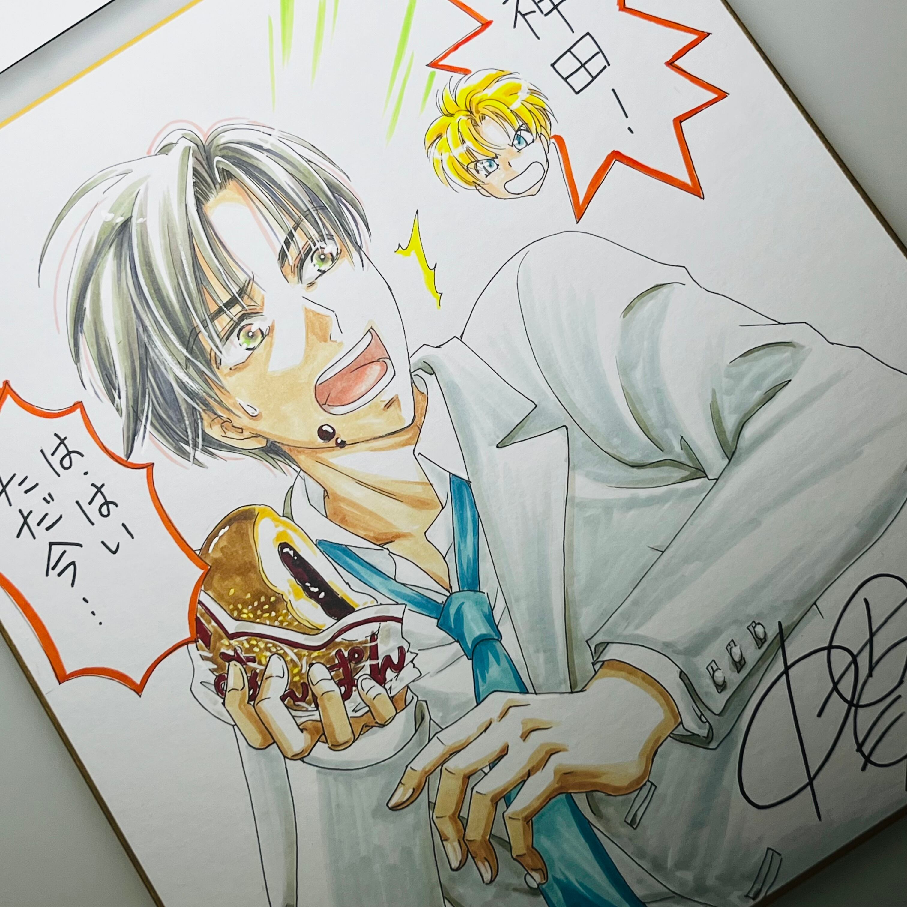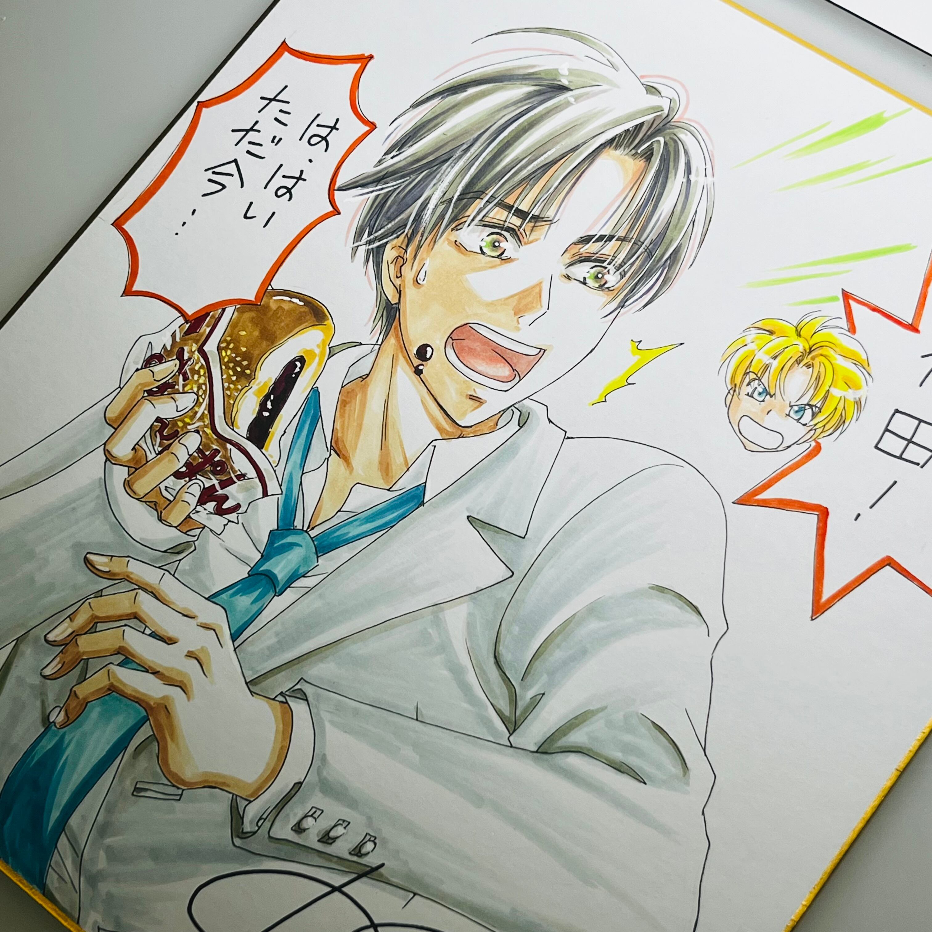 直筆イラスト色紙 神田(あんぱん)