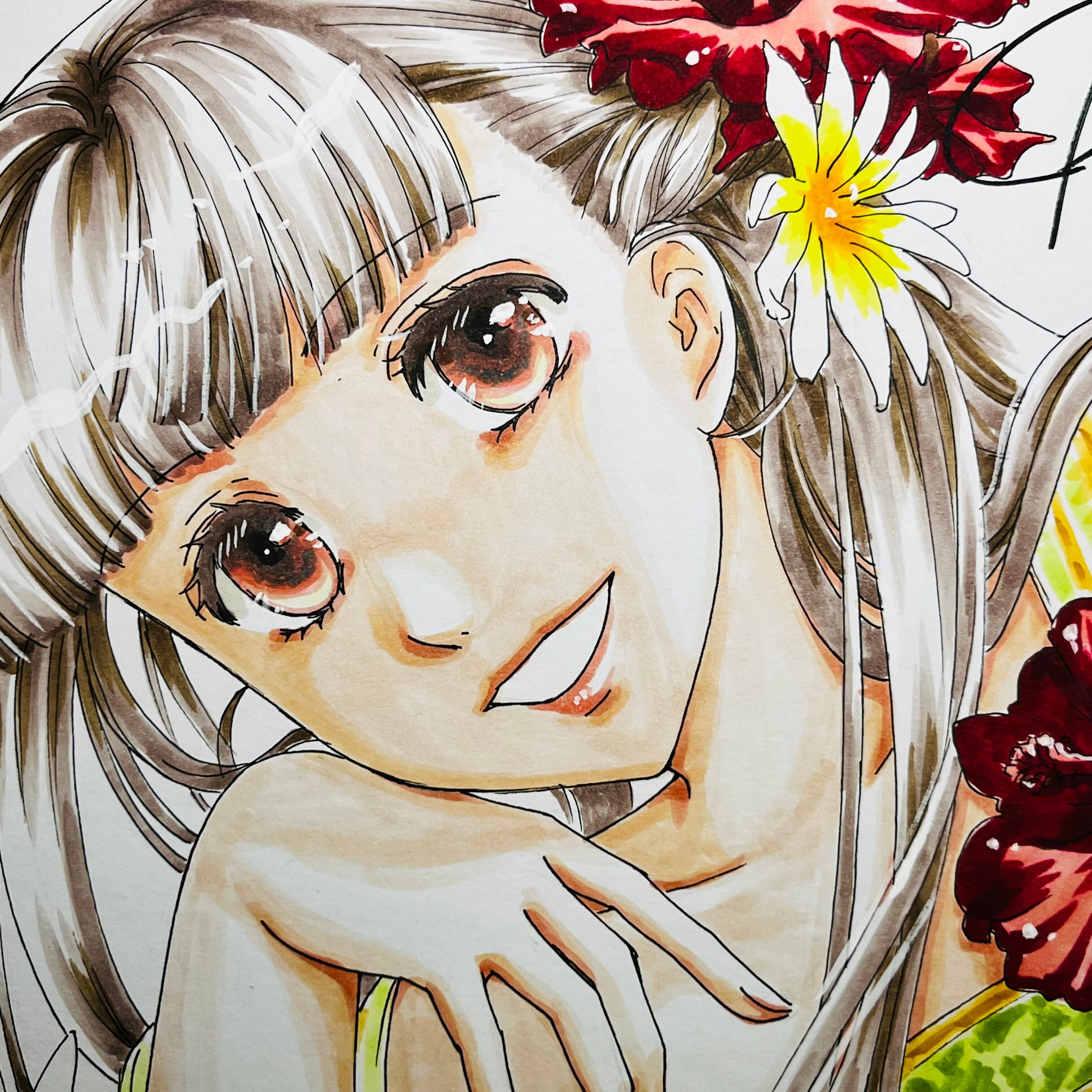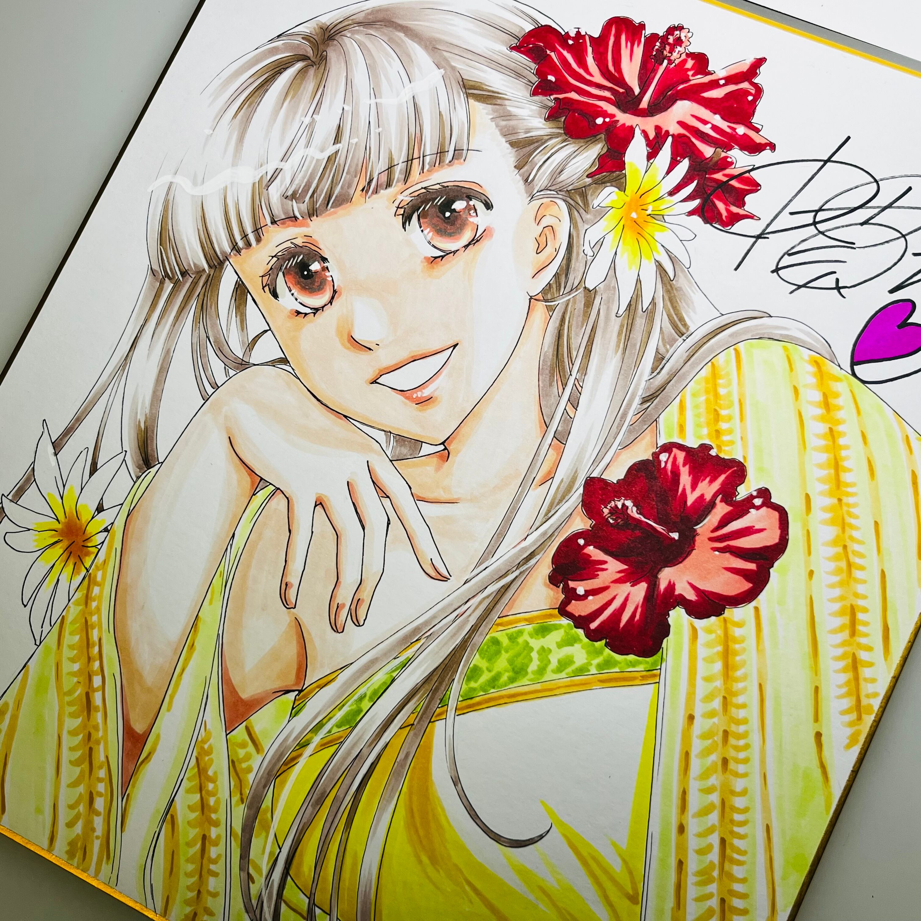 直筆イラスト色紙 麦子(南国)