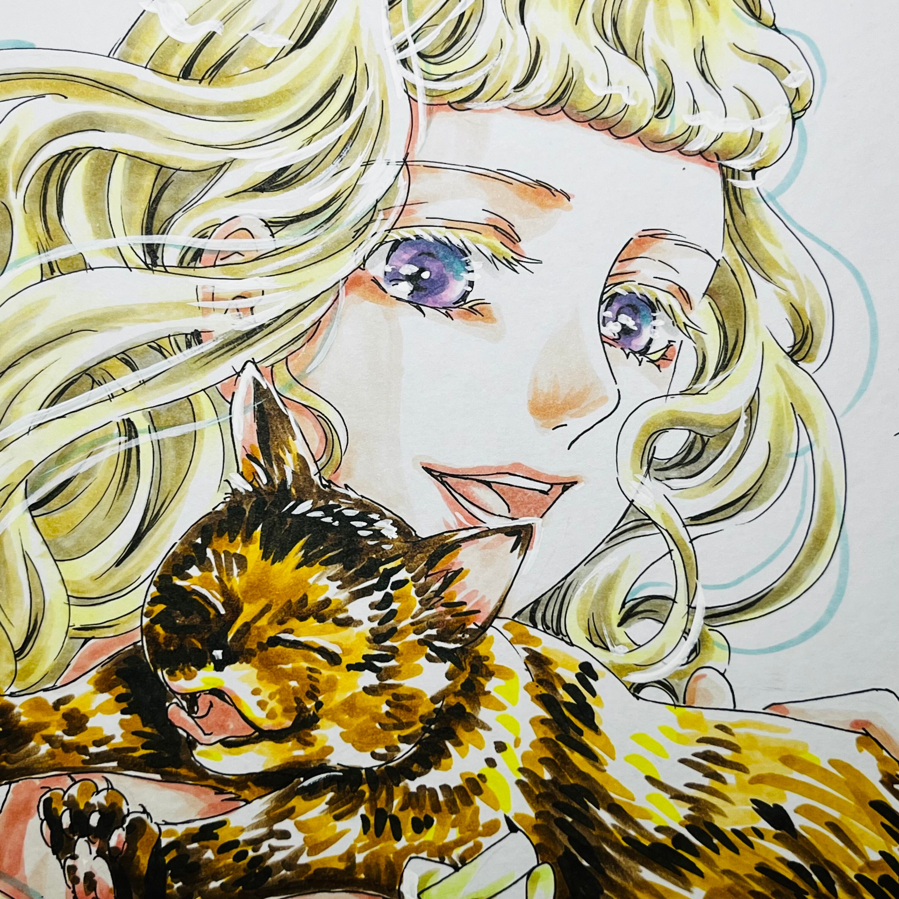 直筆イラスト色紙 マリー姫(べっこう猫)
