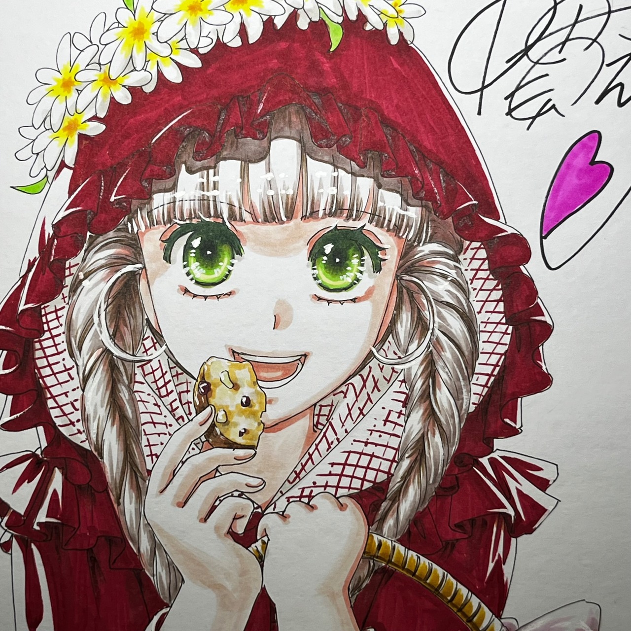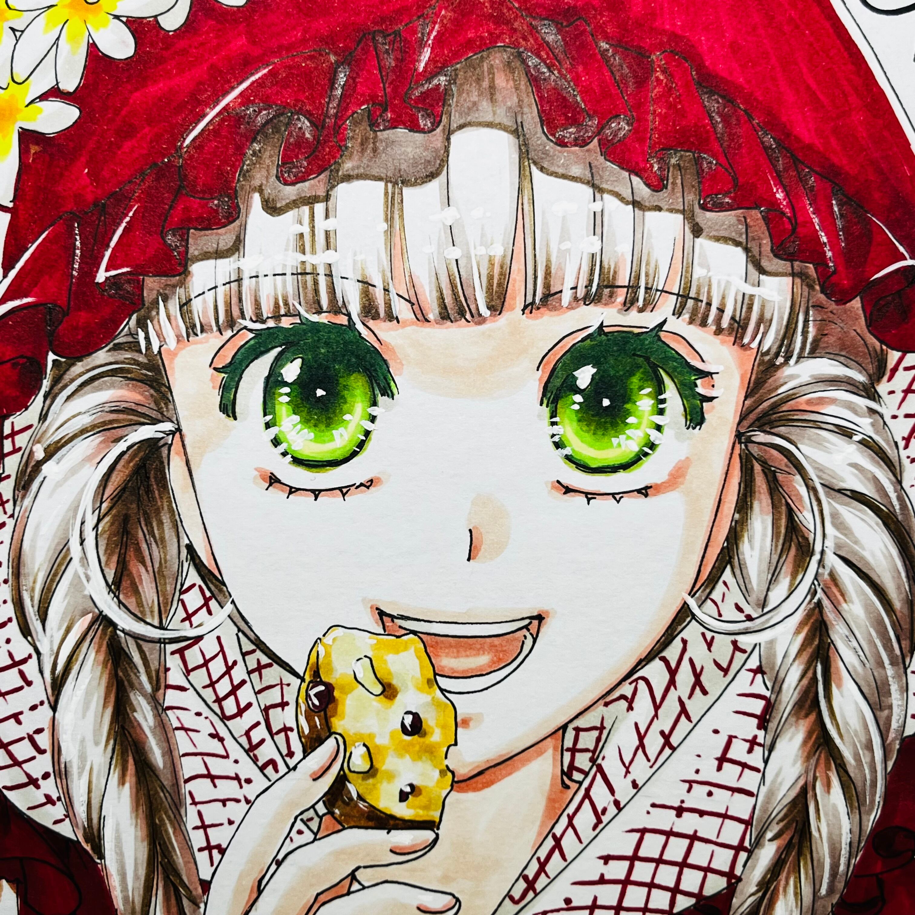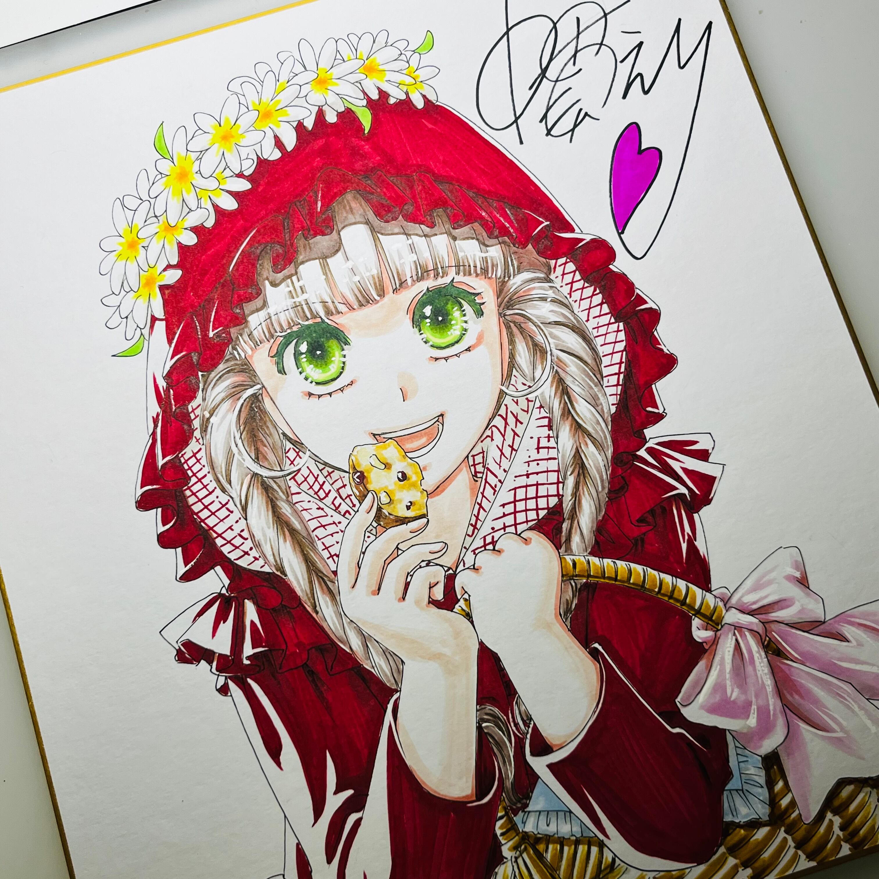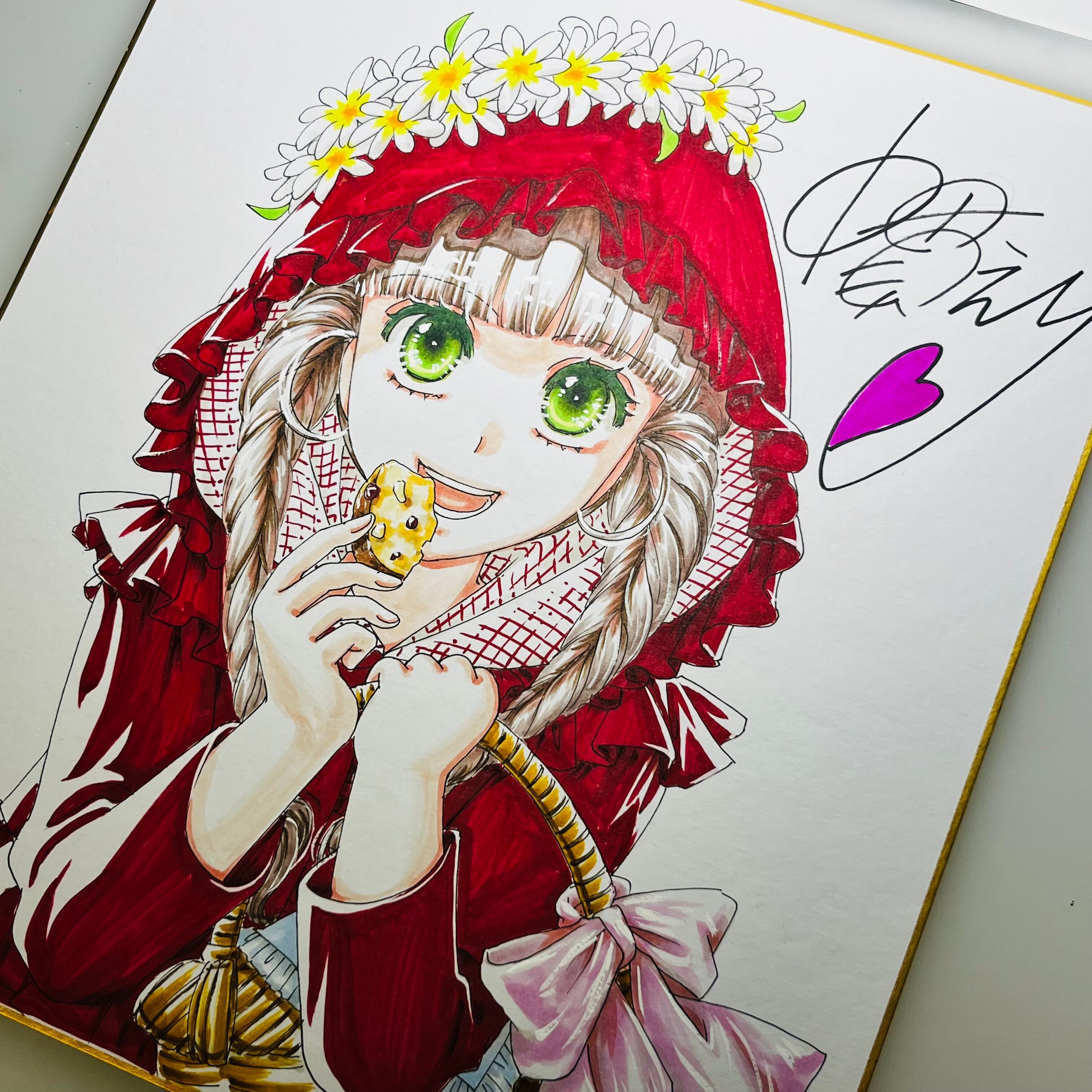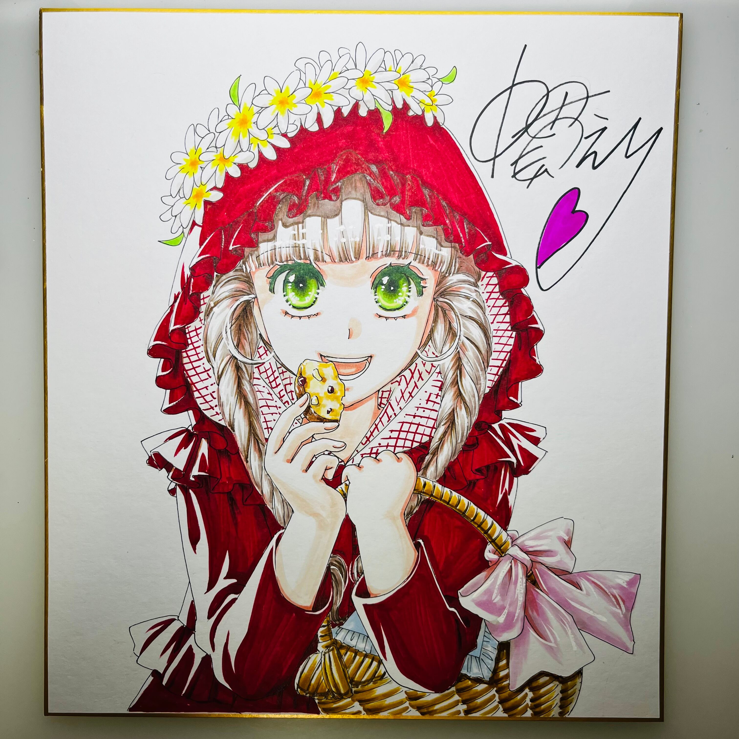 直筆イラスト色紙 麦子(赤ずきん)