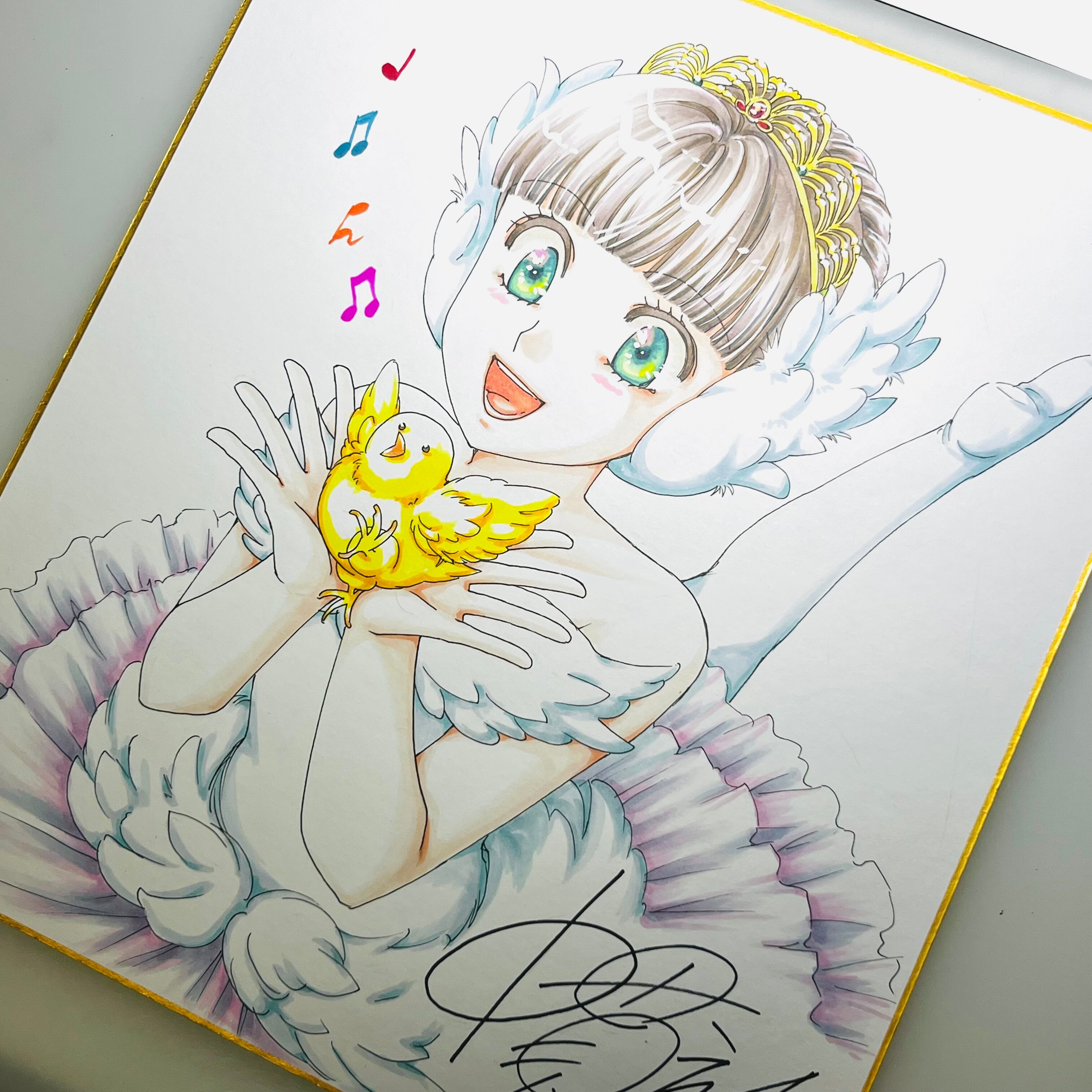 直筆イラスト色紙 麦子(白鳥の湖)
