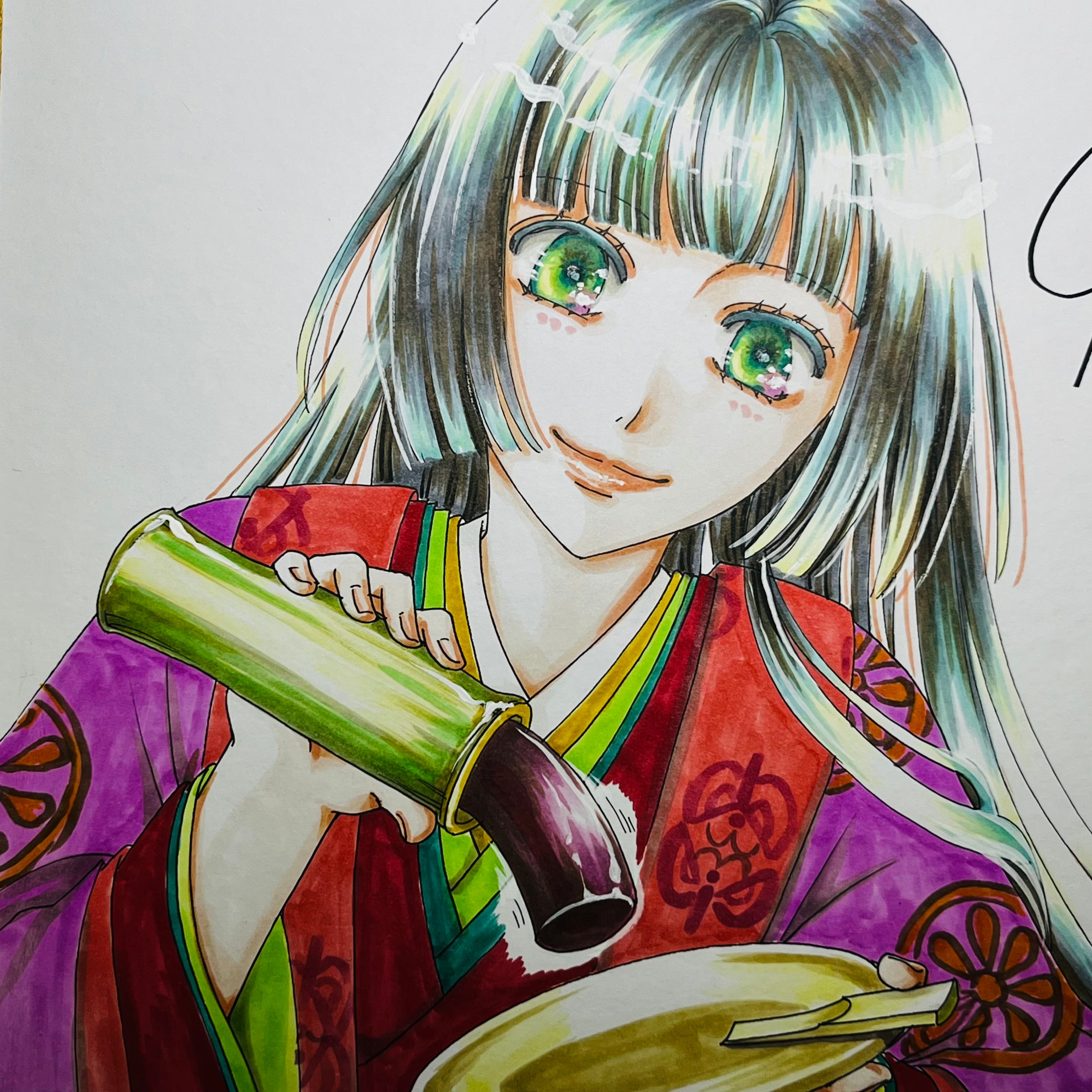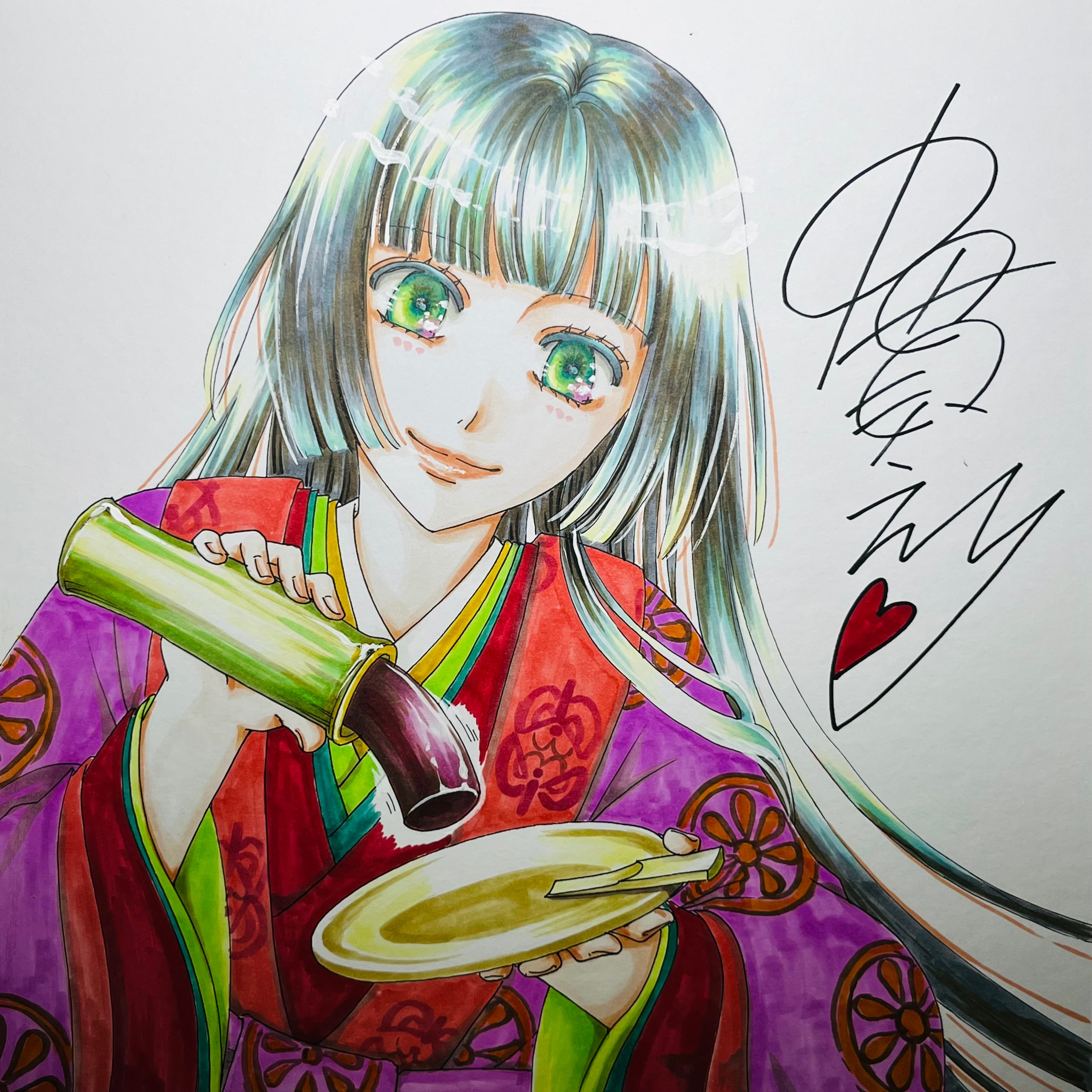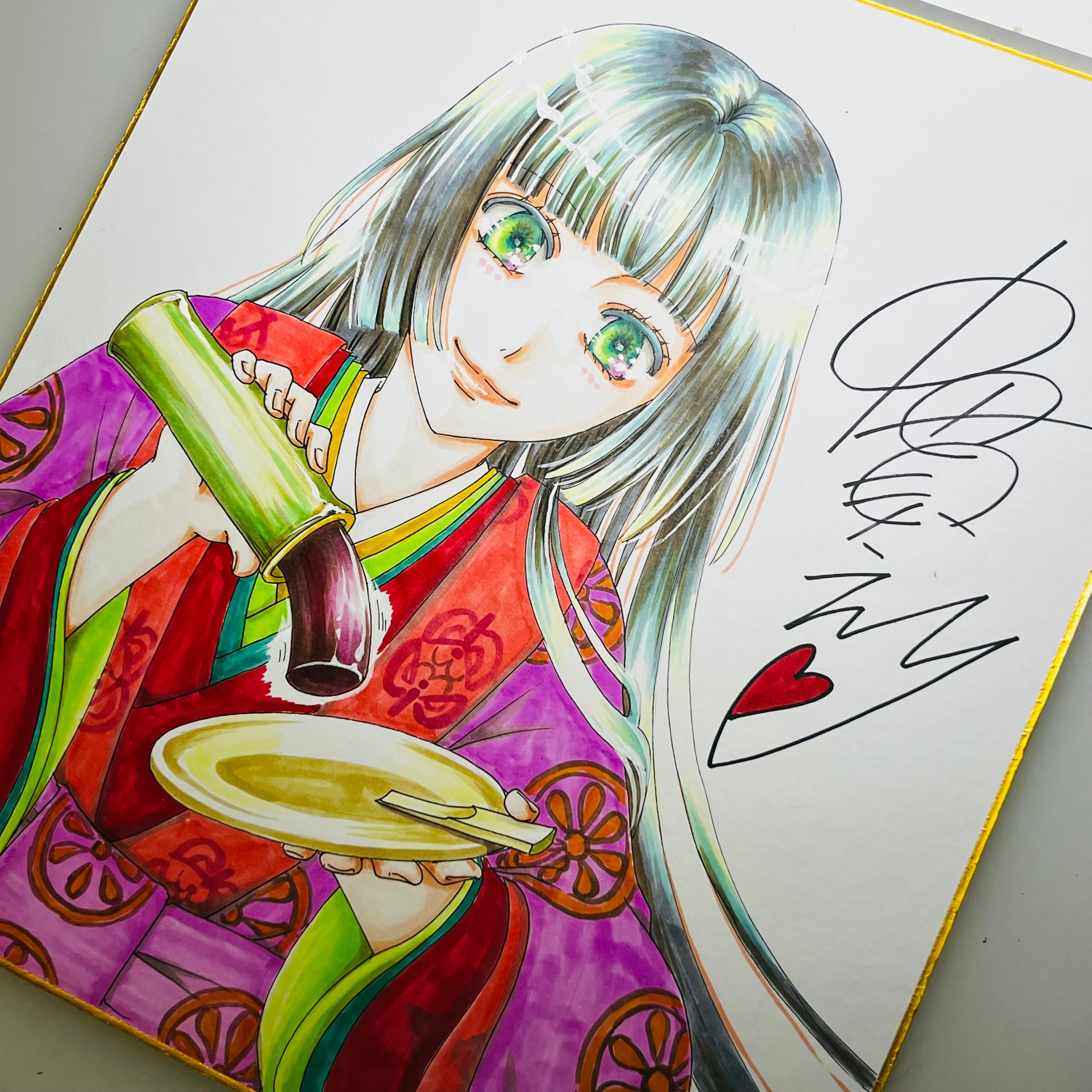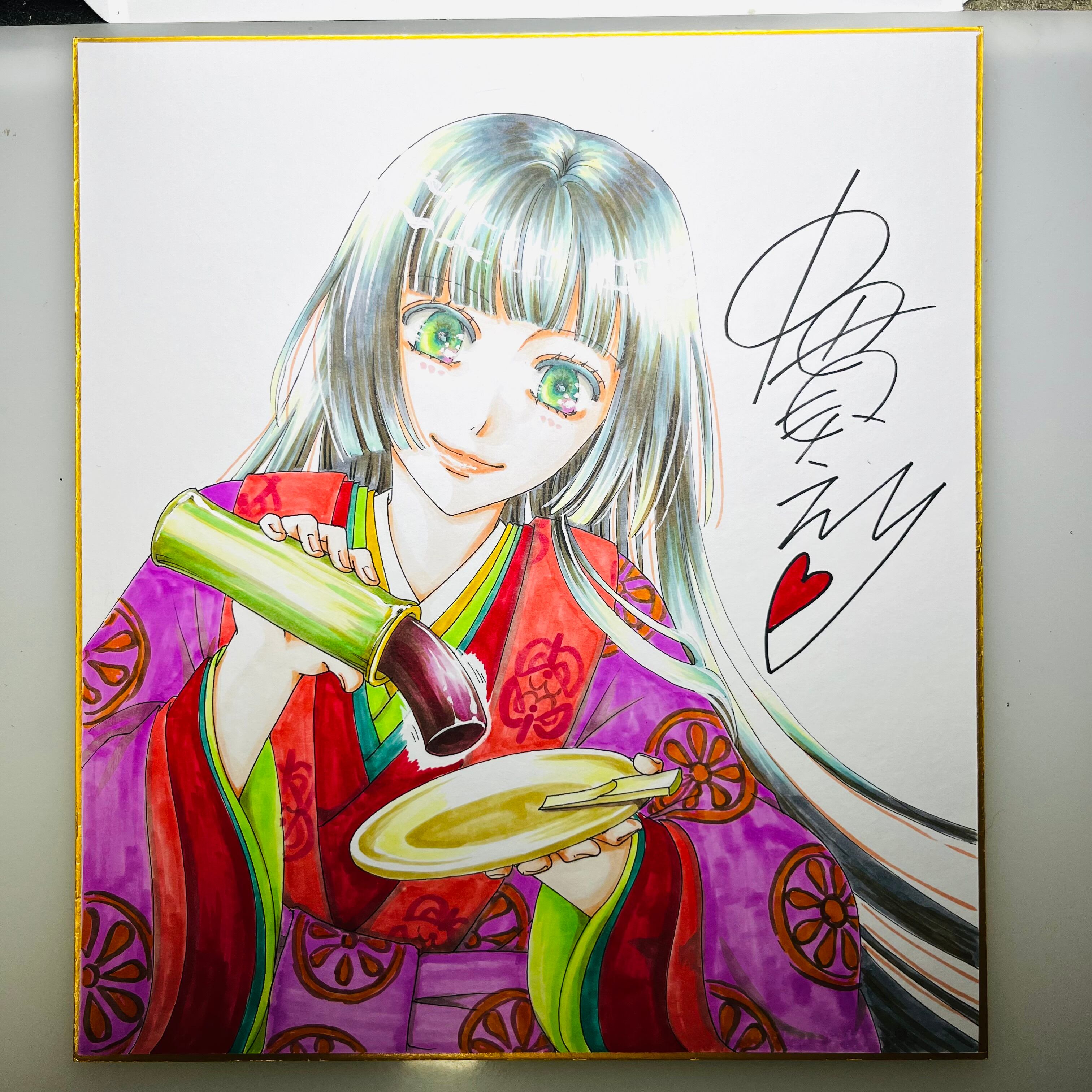 直筆イラスト色紙 麦子(かぐや姫)