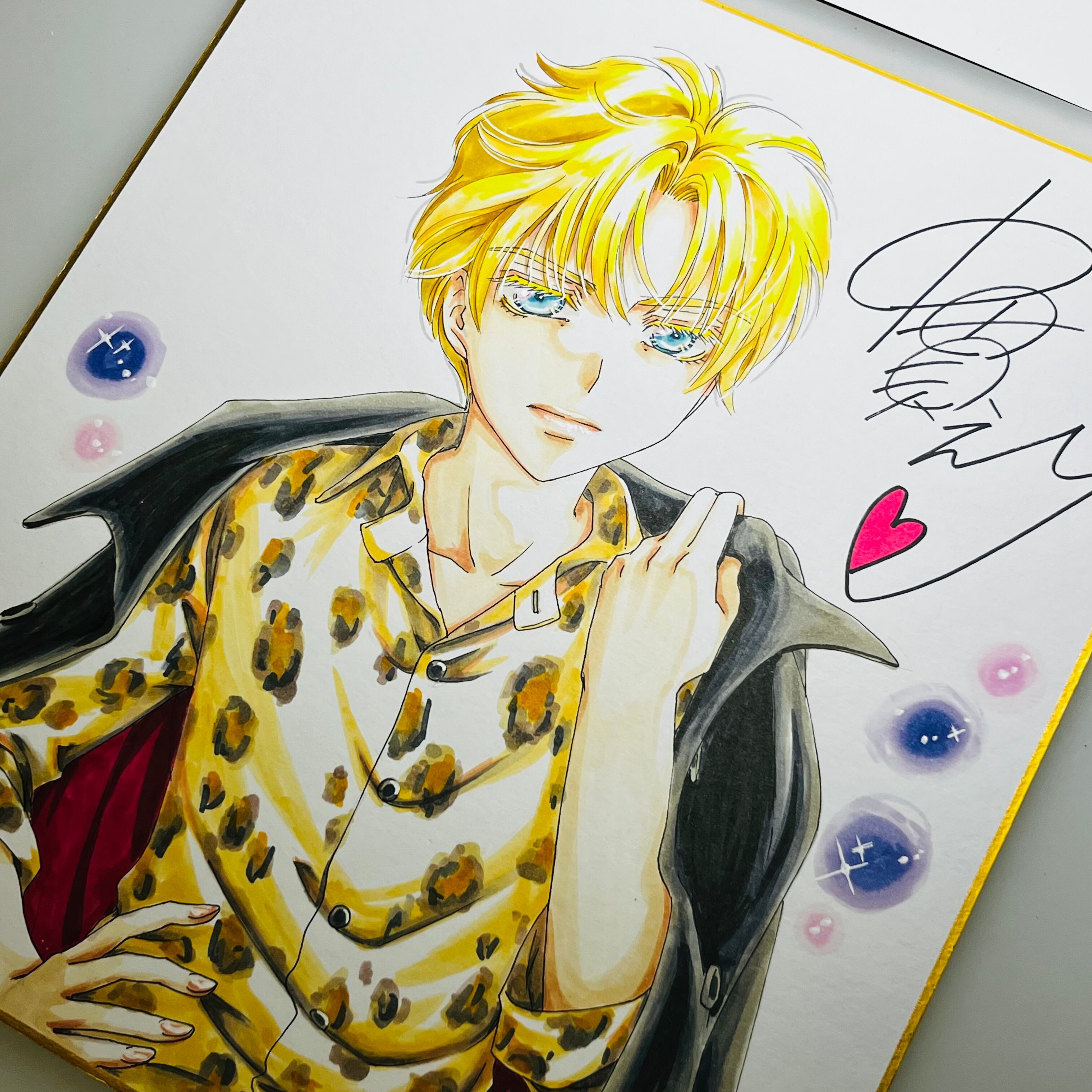 直筆イラスト色紙 輝(ヒョウ)
