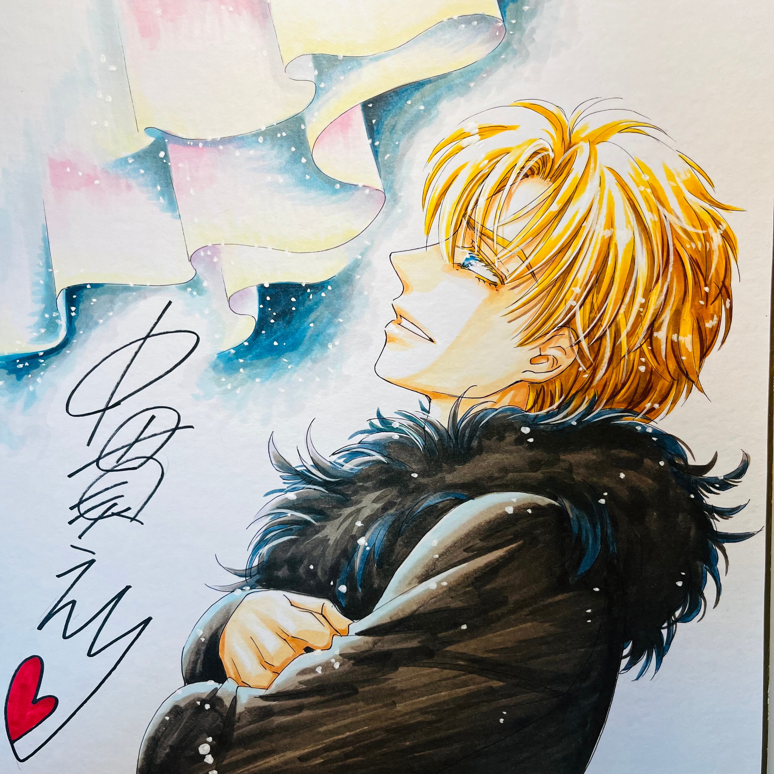直筆イラスト色紙 輝(オーロラクリスマス)