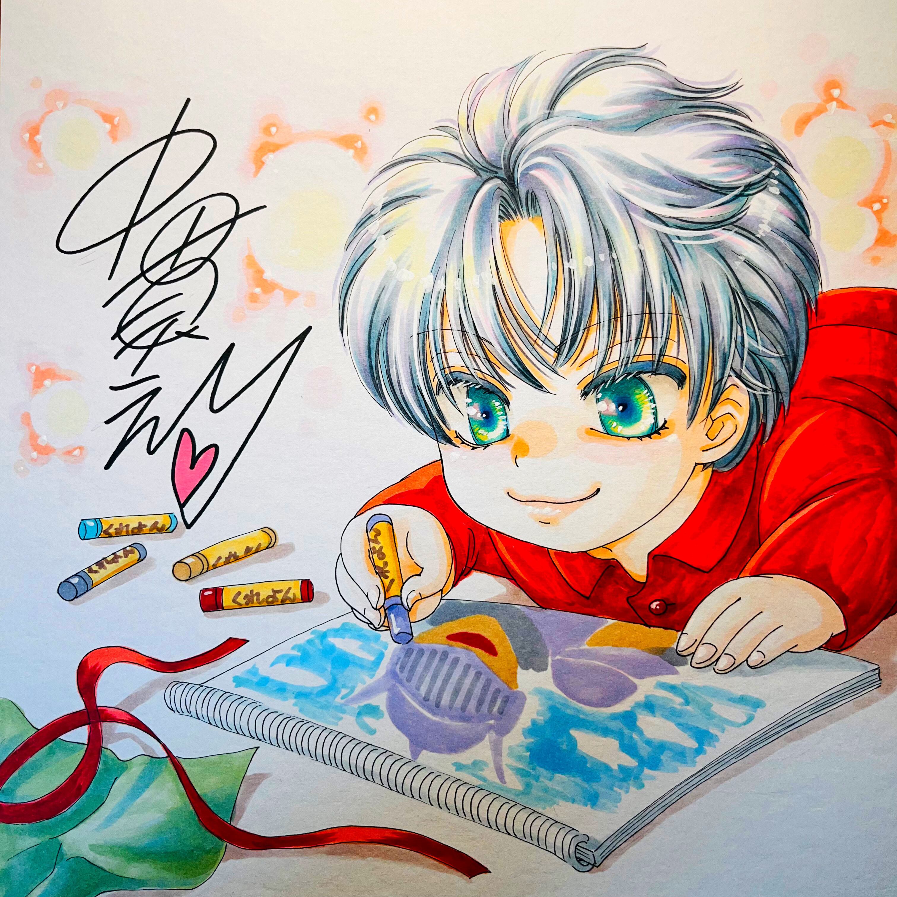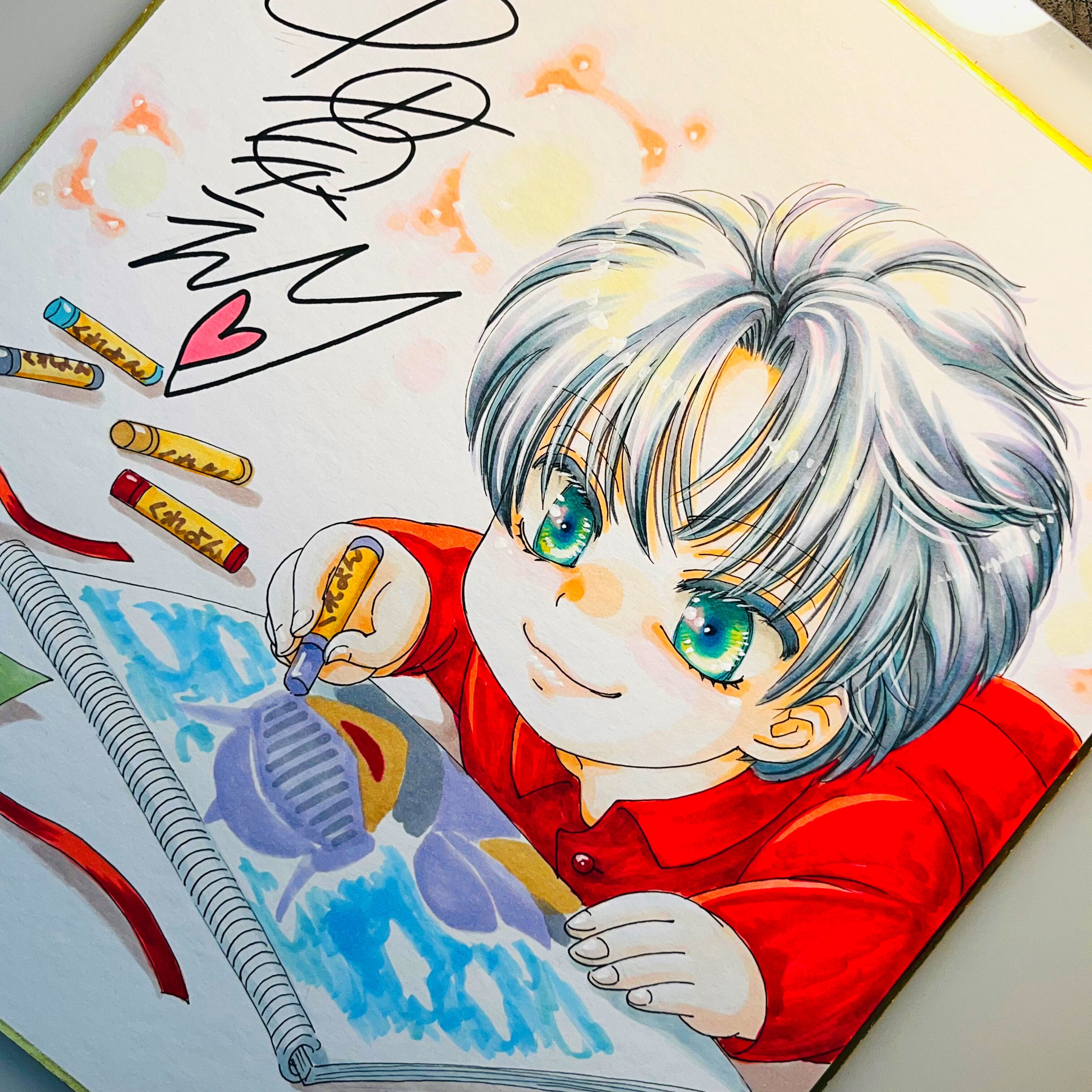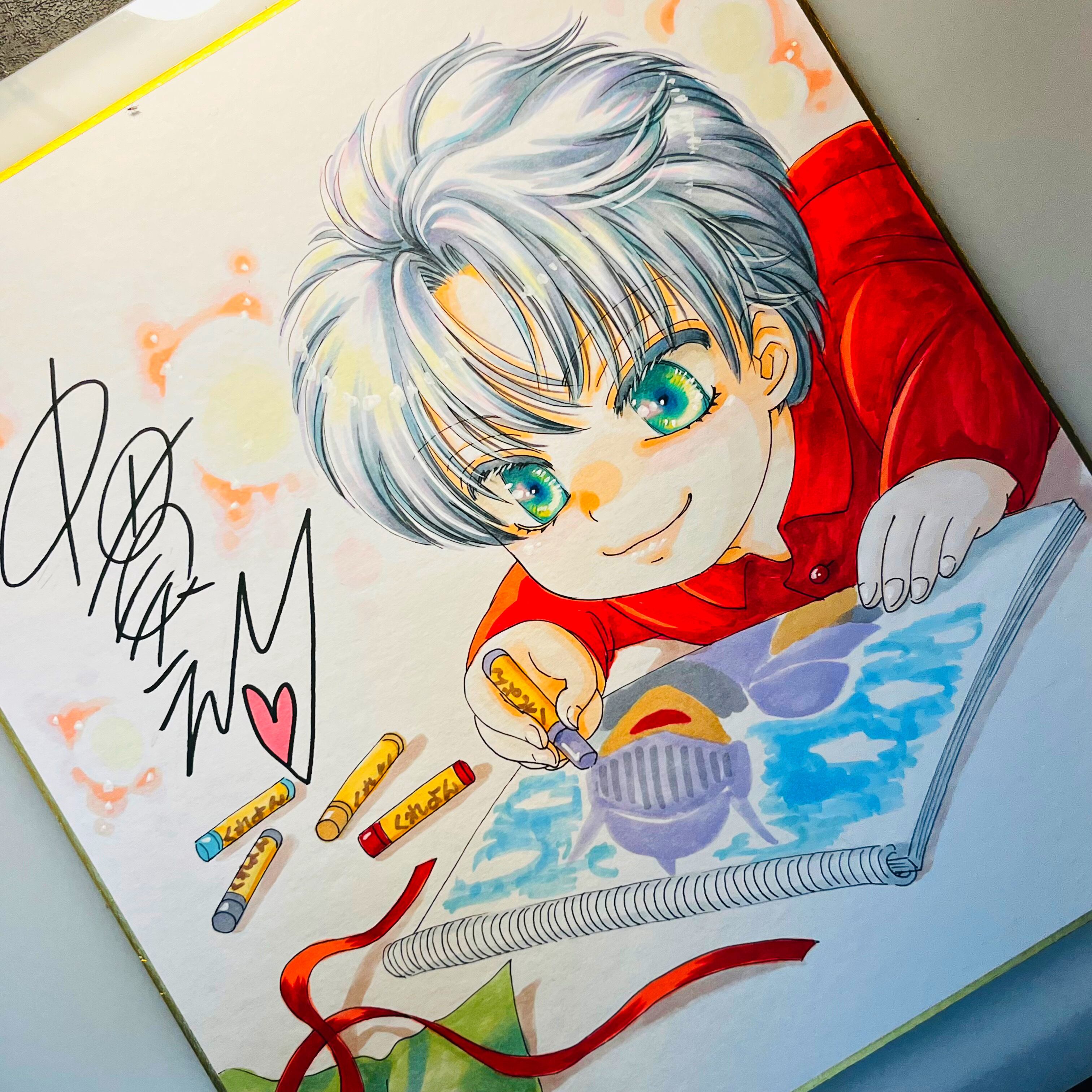 直筆イラスト色紙 一郎(クリスマスの朝)