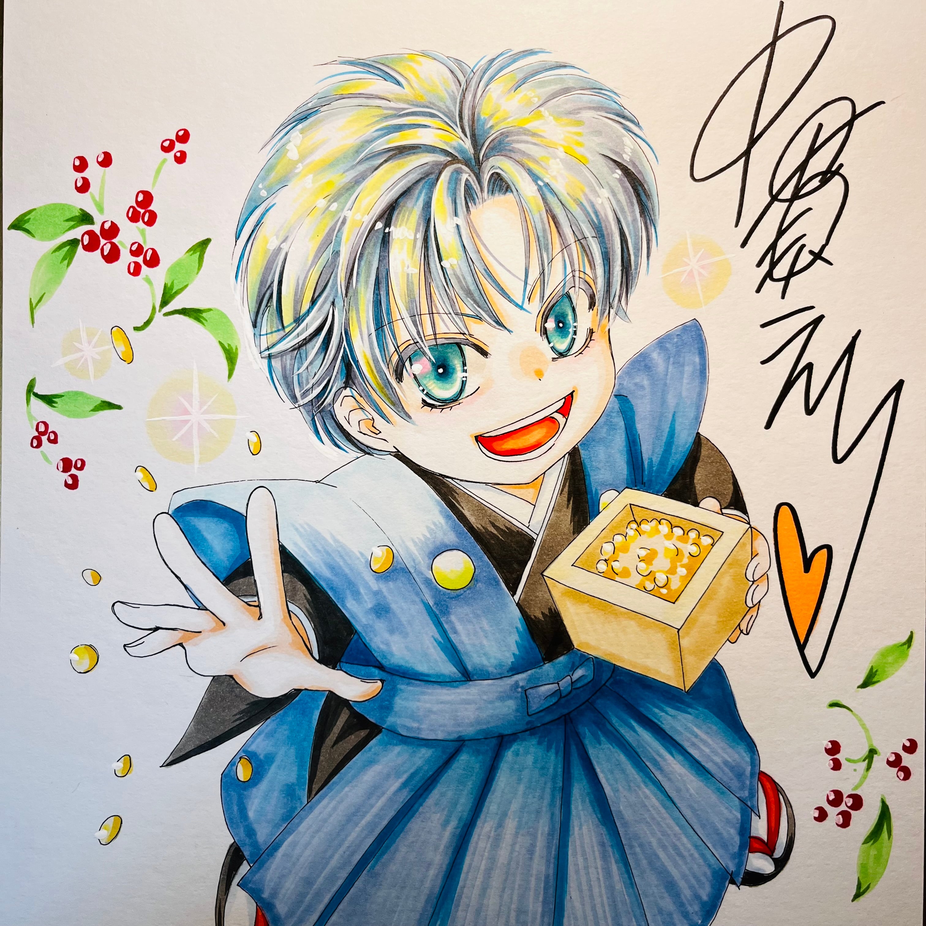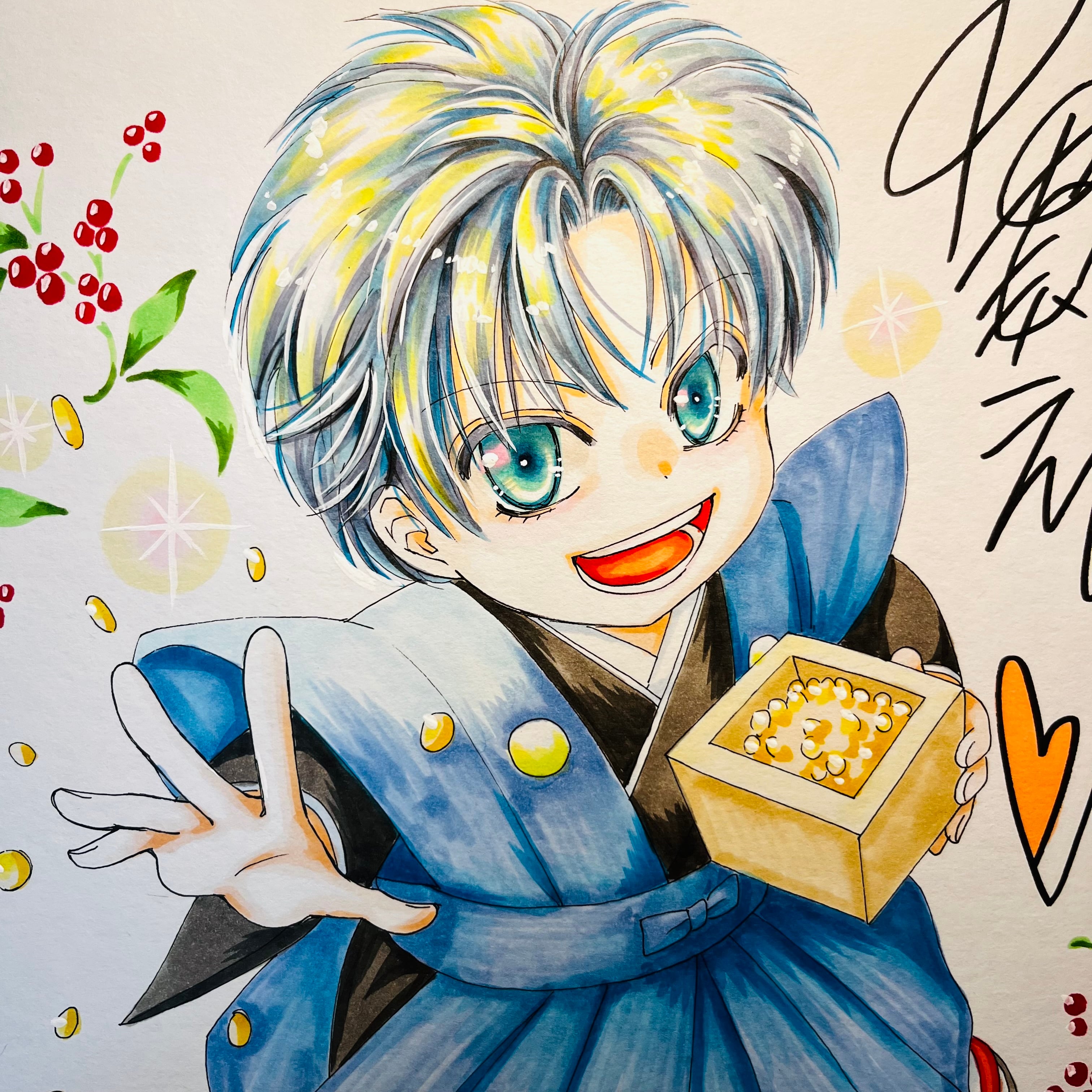 直筆イラスト色紙 一郎(節分)