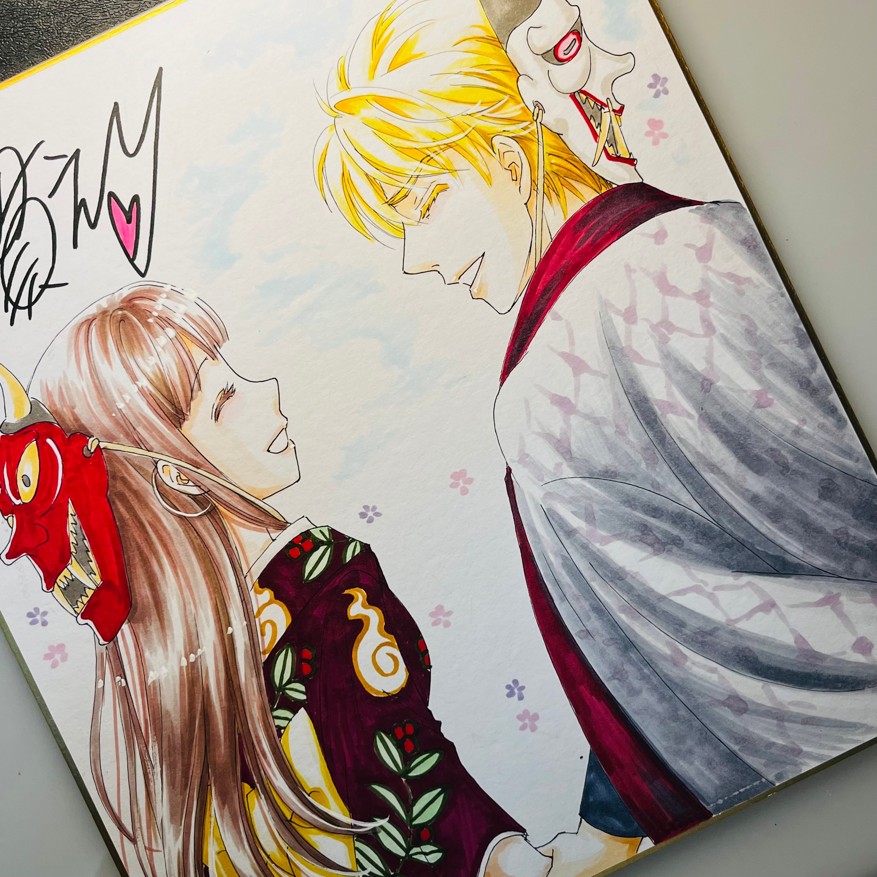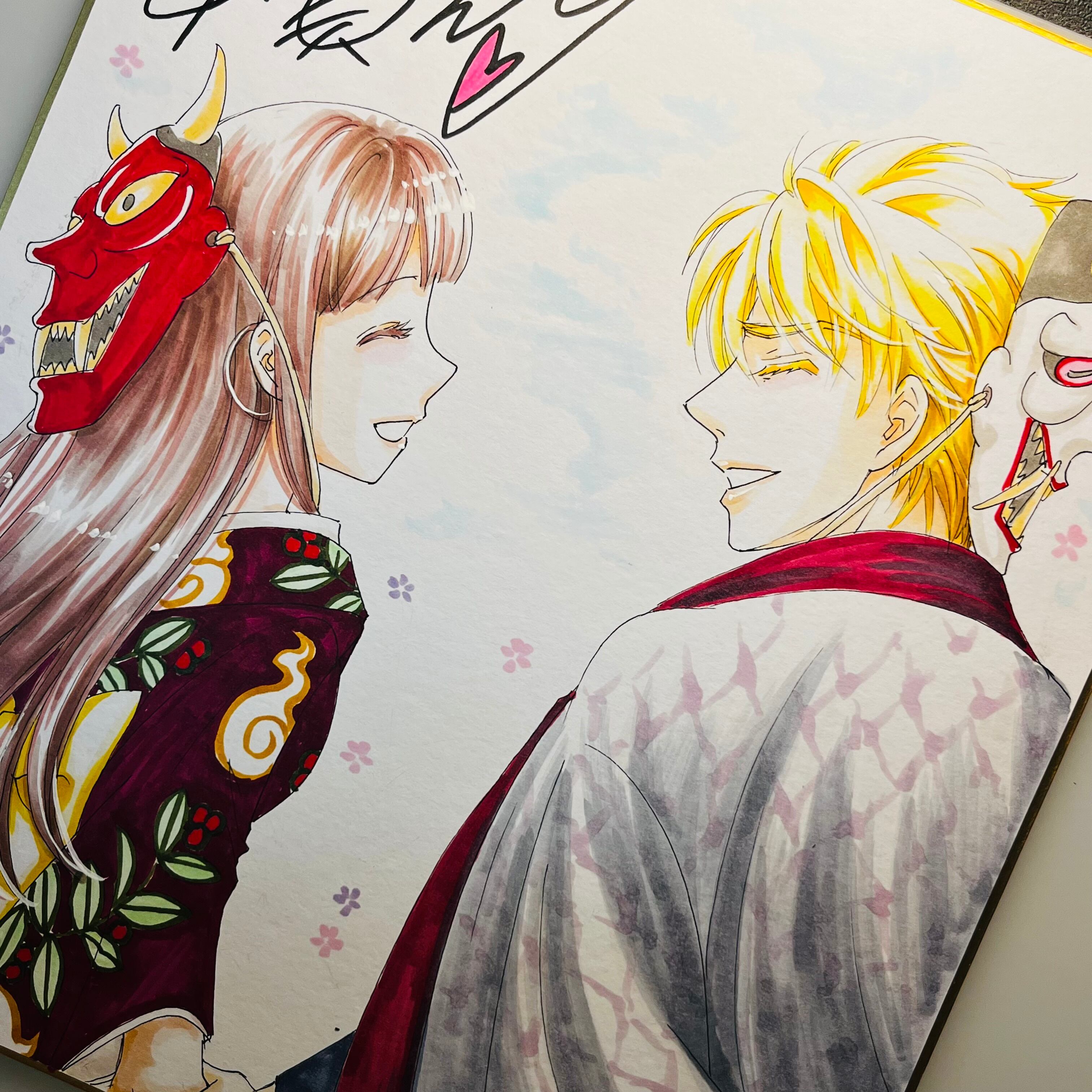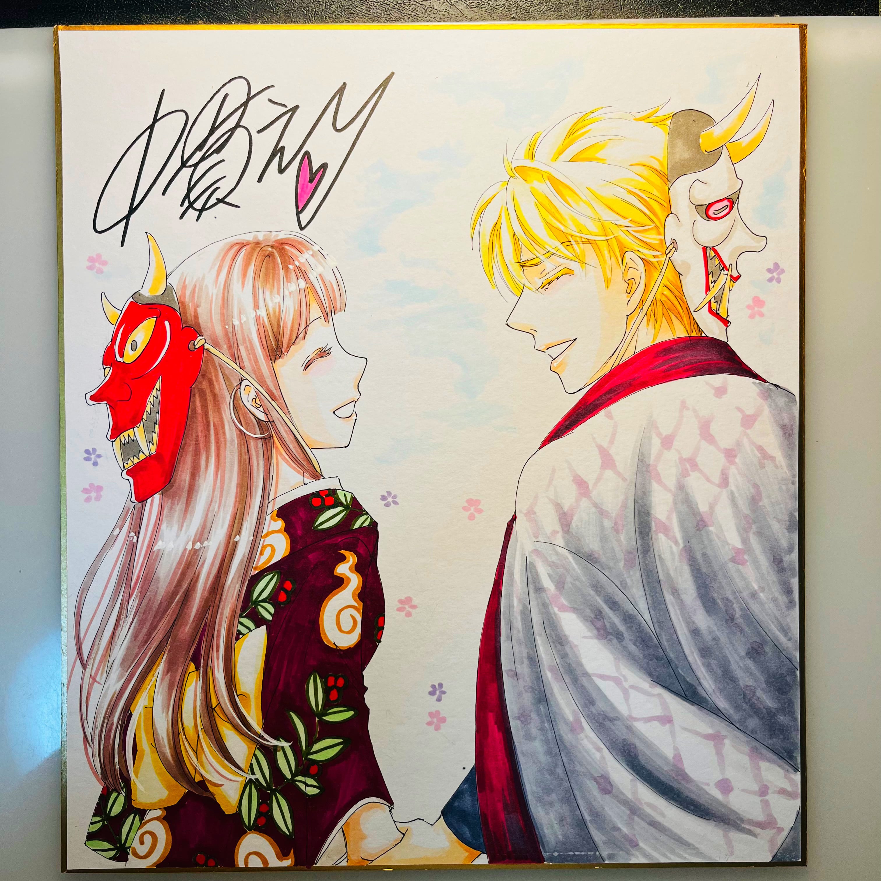 直筆イラスト色紙 麦子と輝(鬼は外)