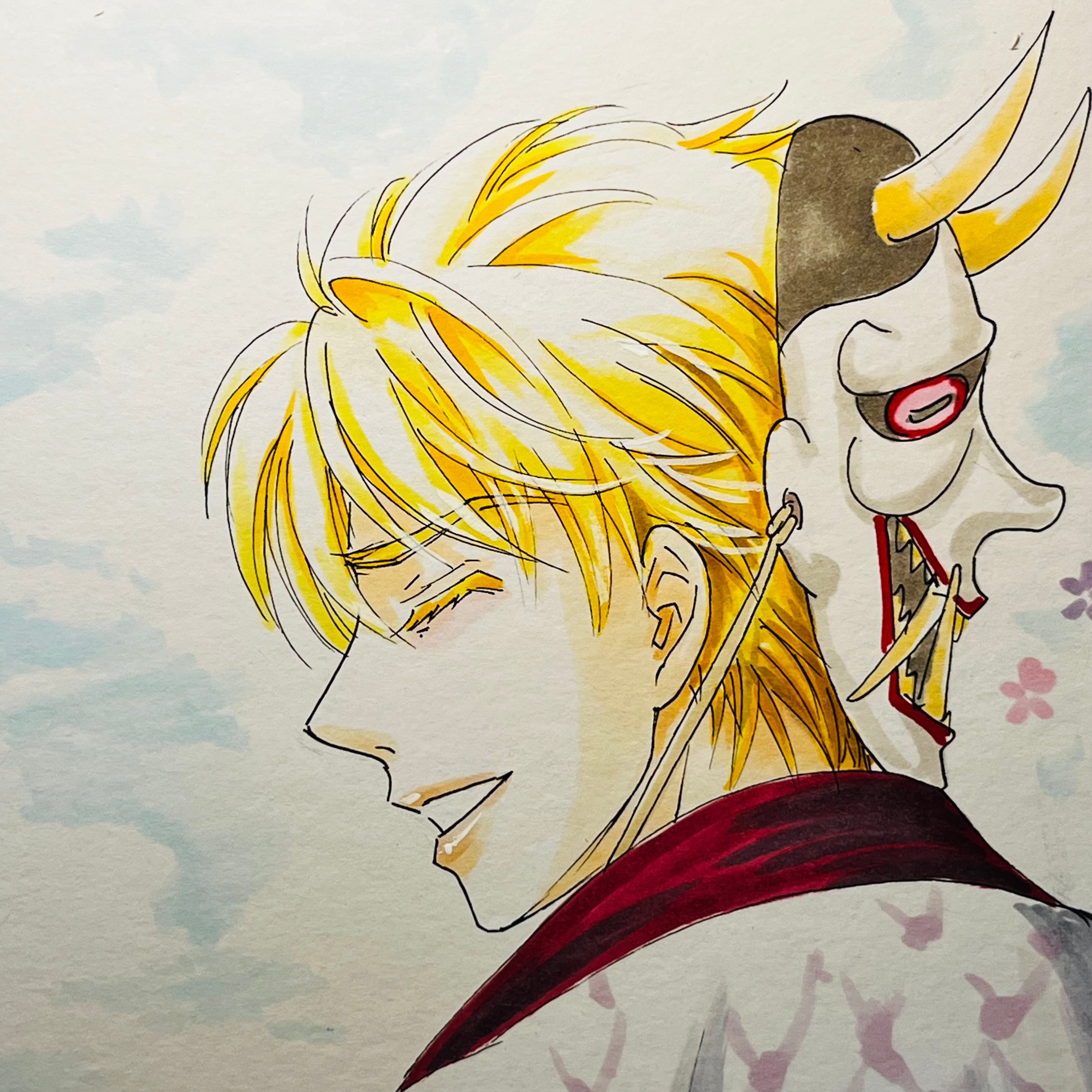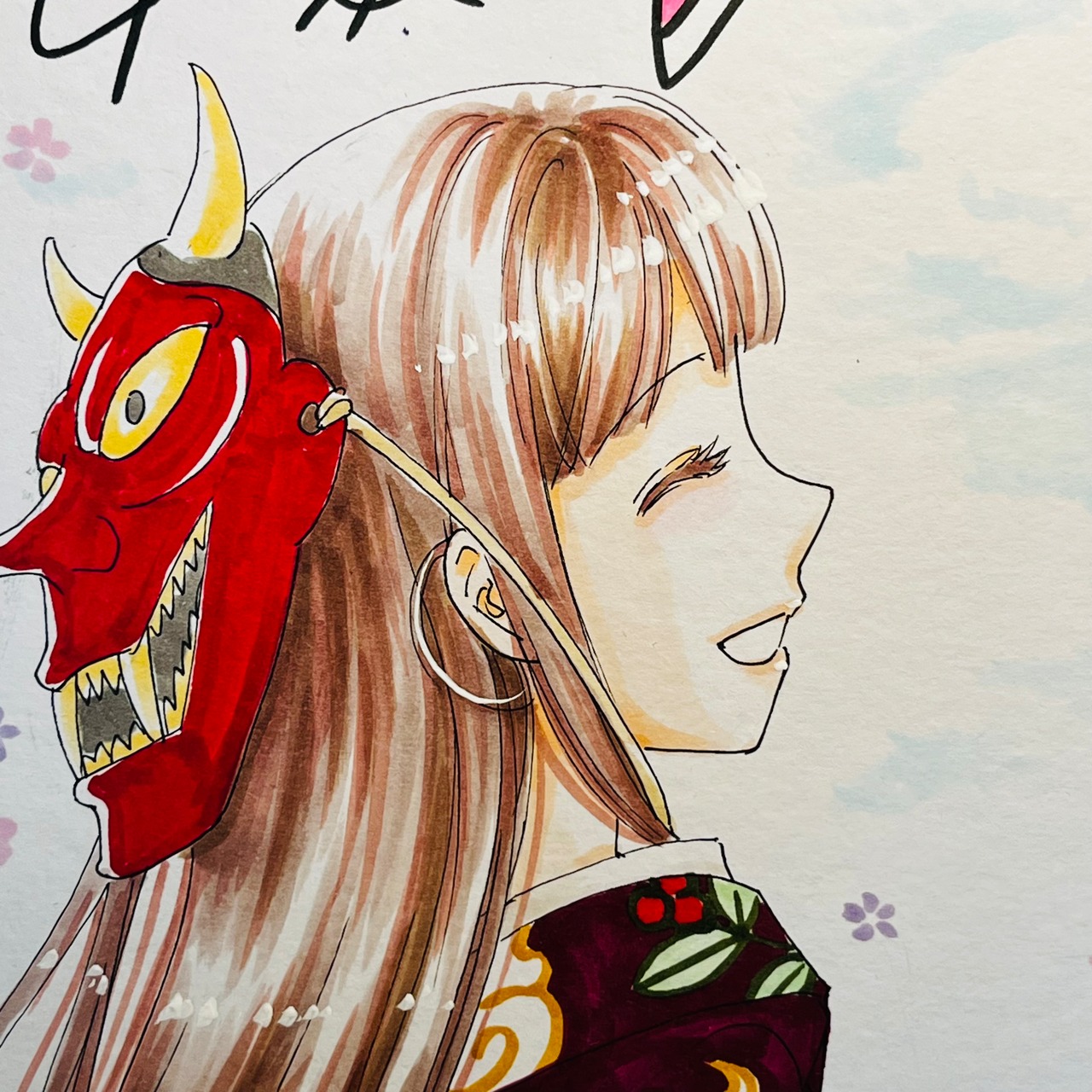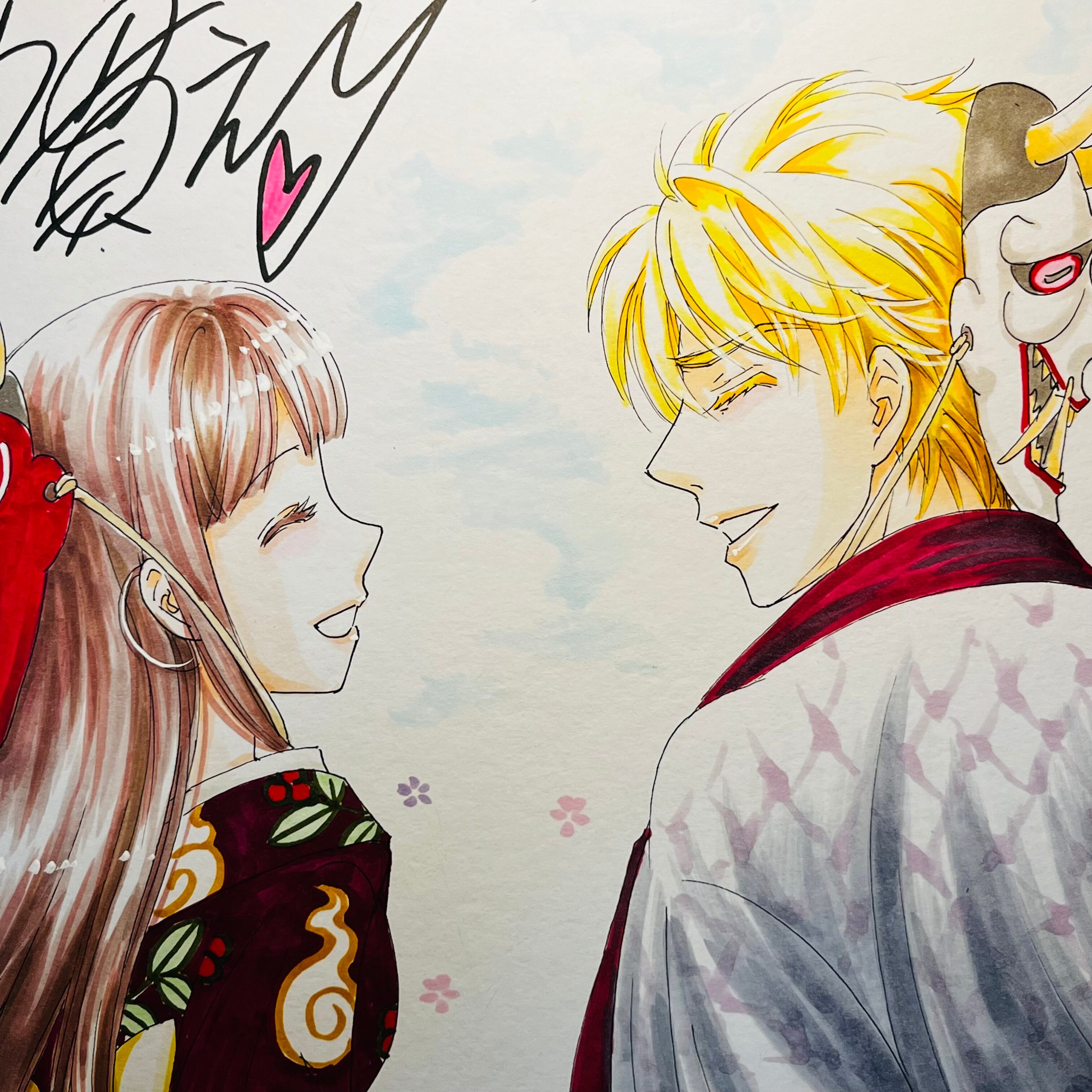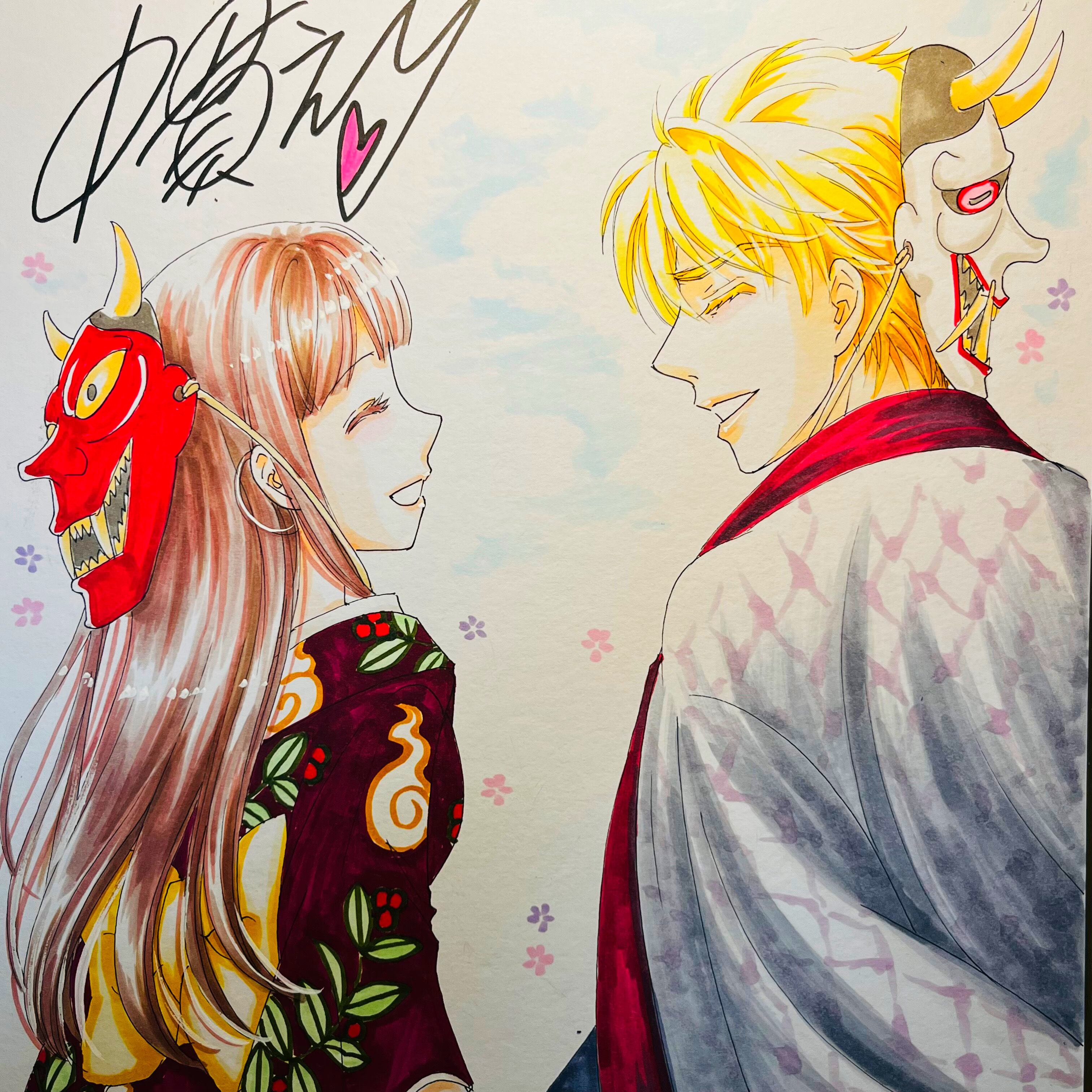 直筆イラスト色紙 麦子と輝(鬼は外)