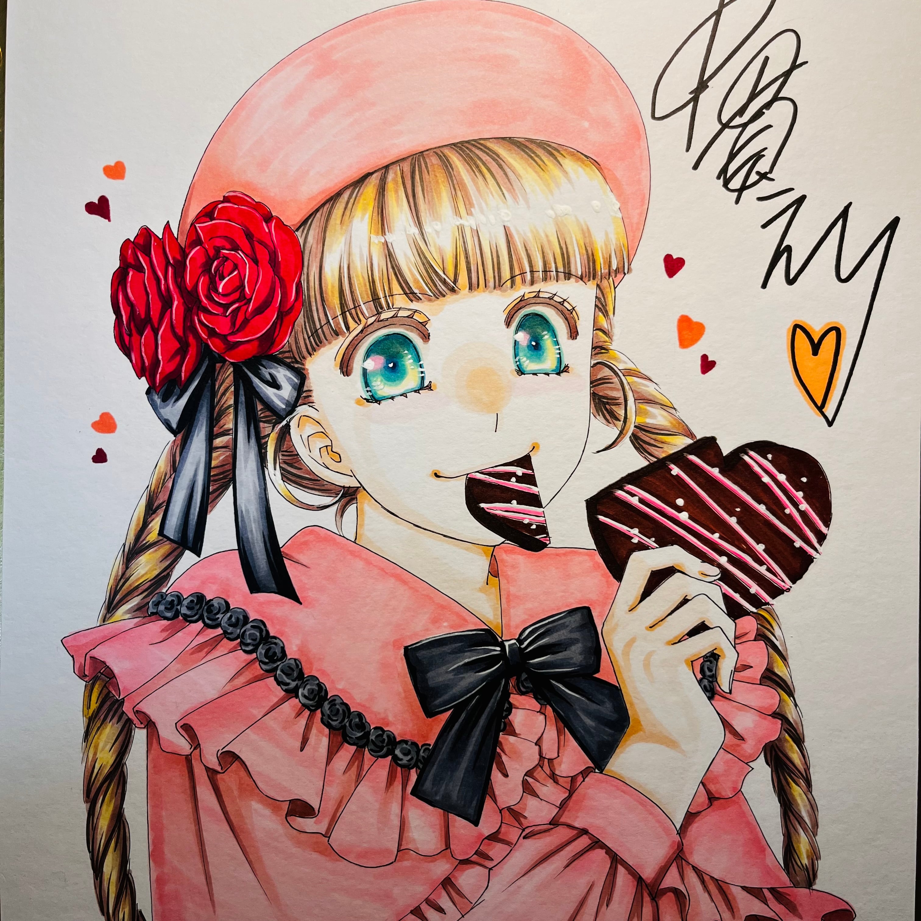 直筆イラスト色紙 麦子(試食)