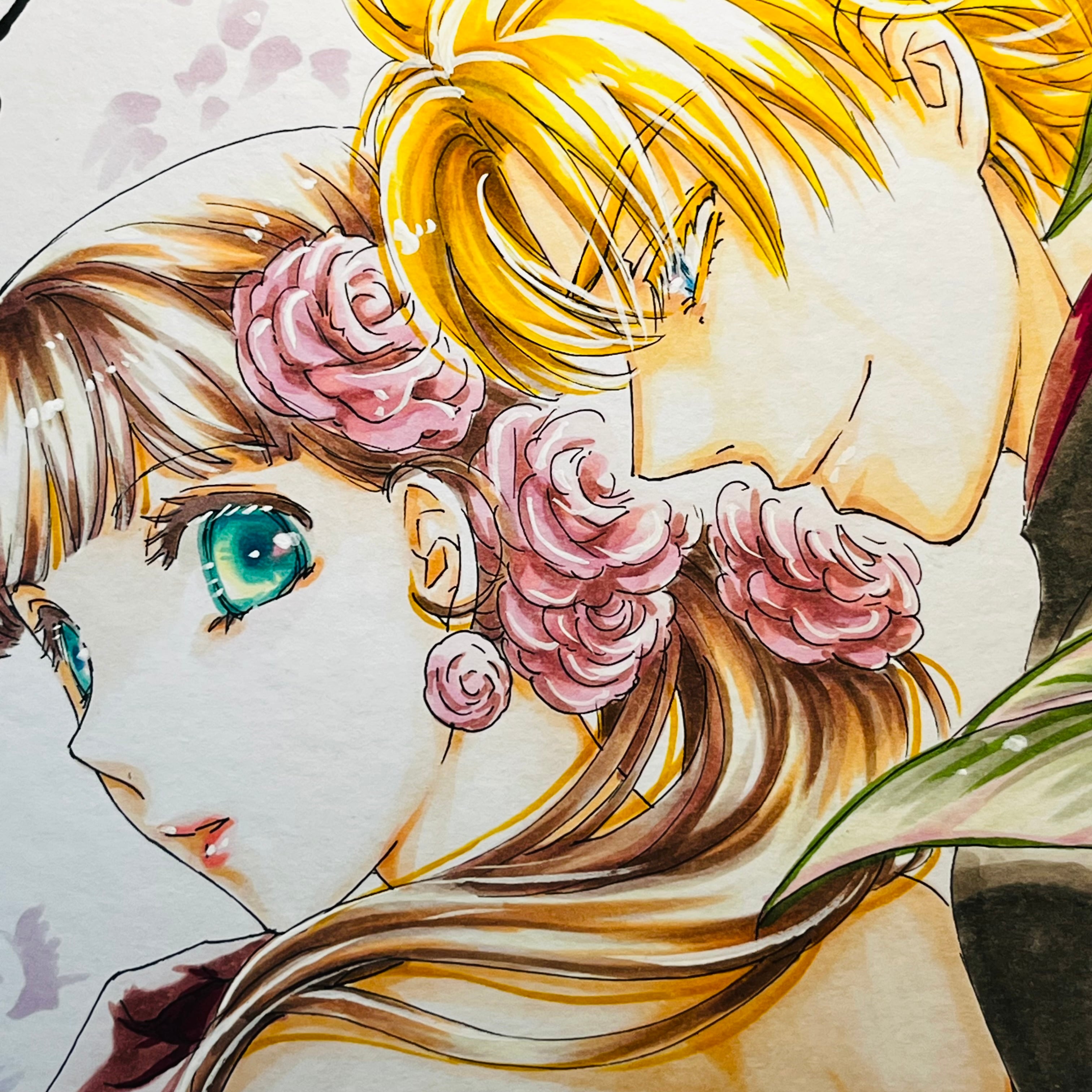 直筆イラスト色紙 麦子と輝(ファスナー)
