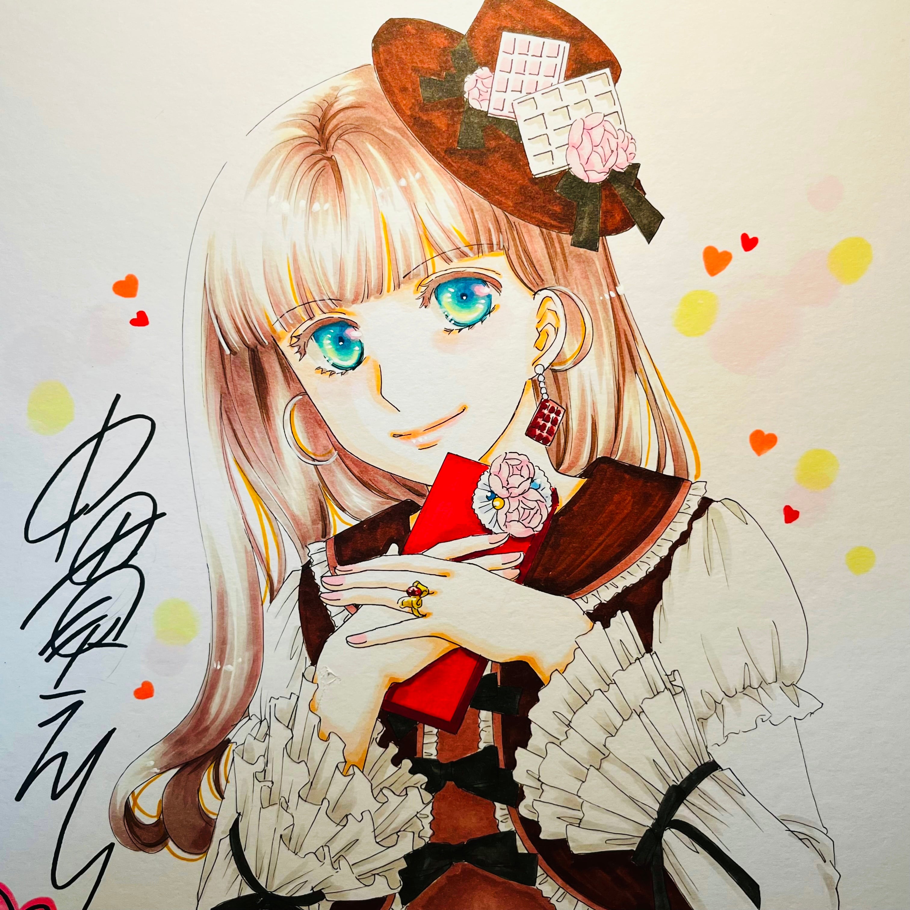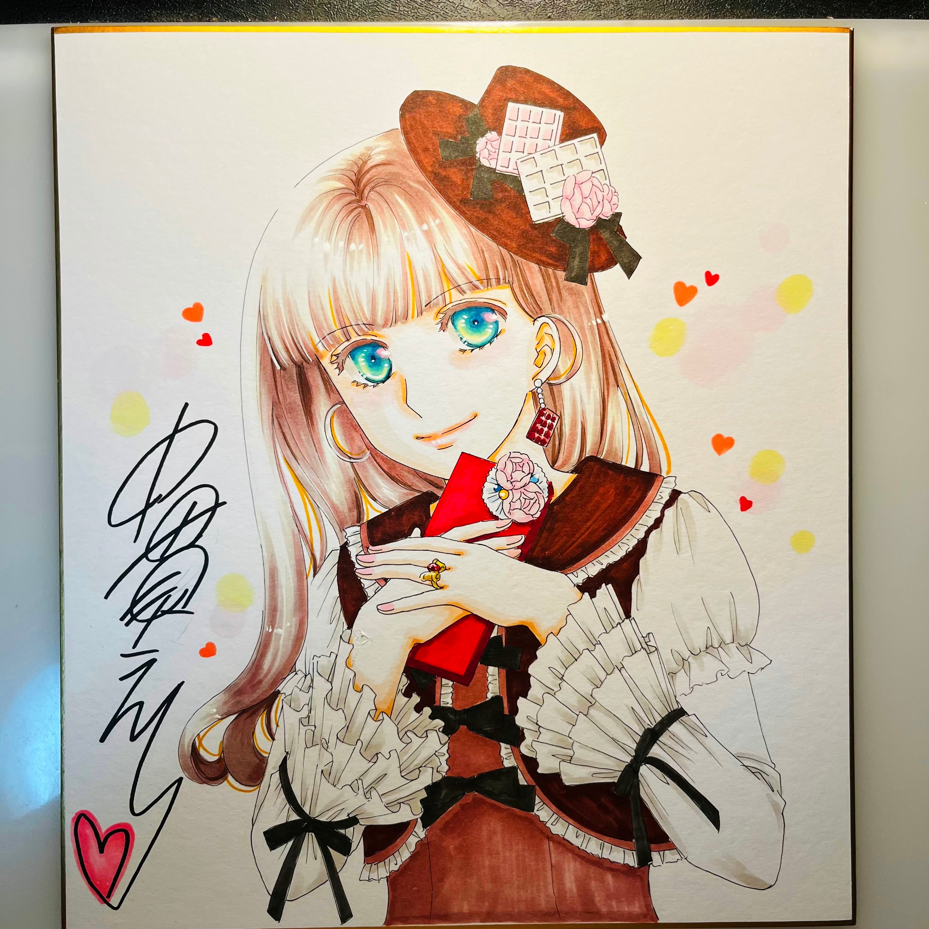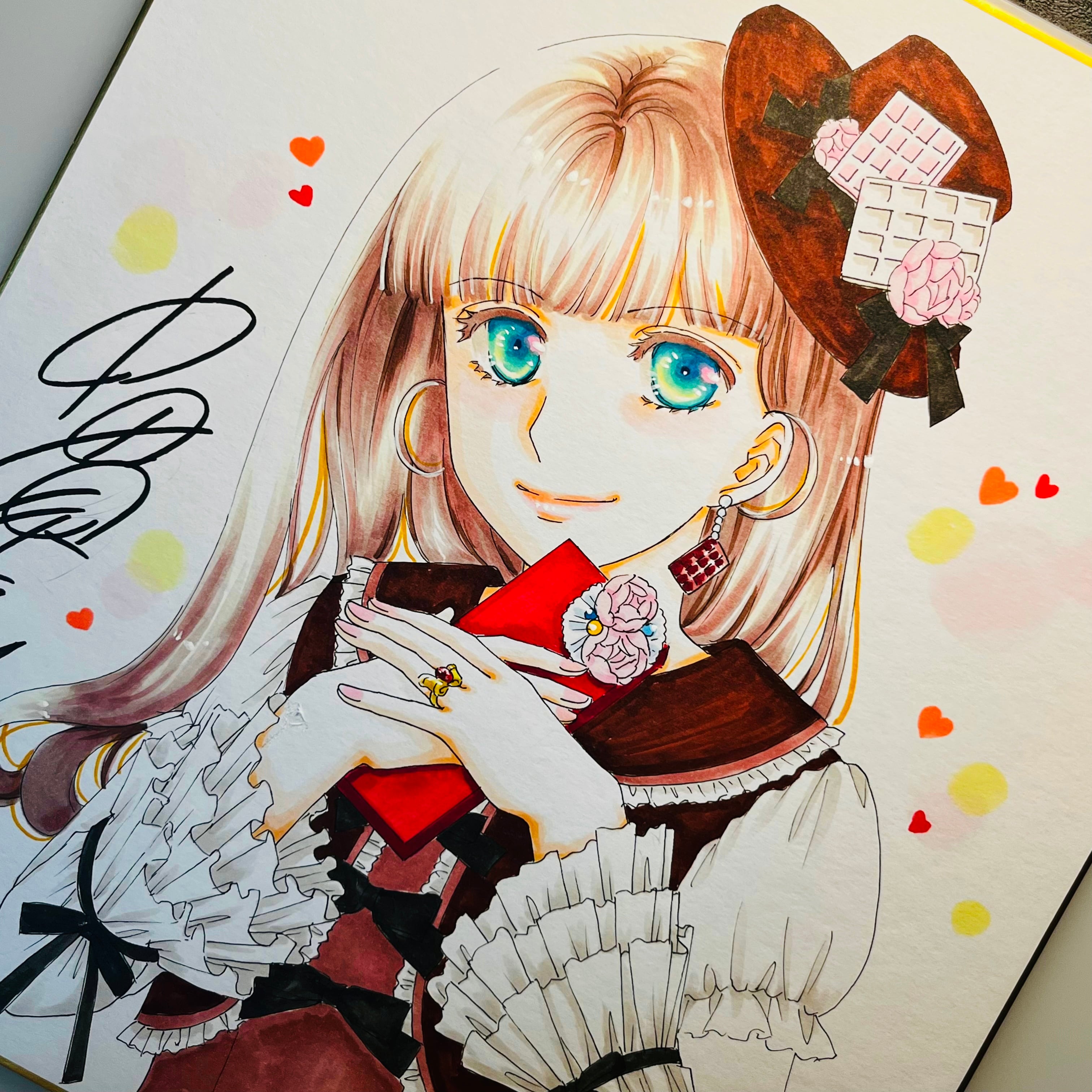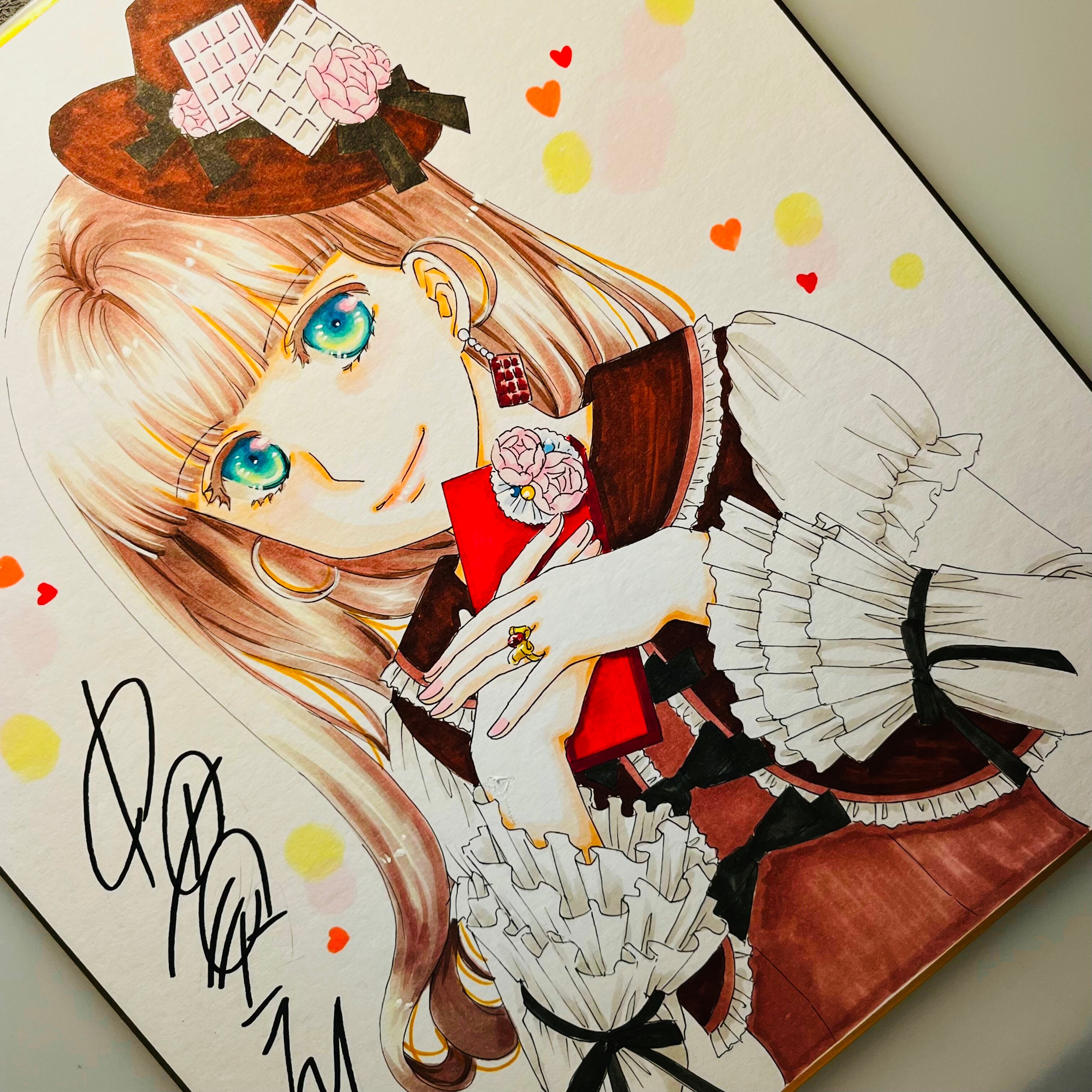 直筆イラスト色紙 麦子(バレンタインチョコ)
