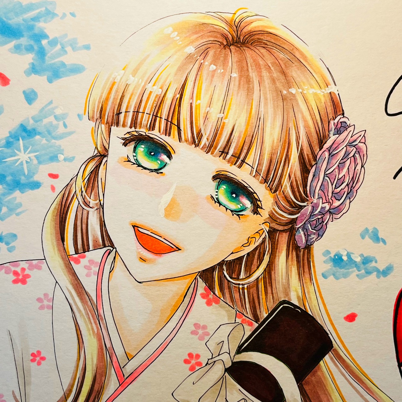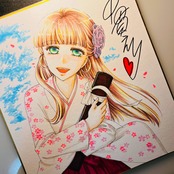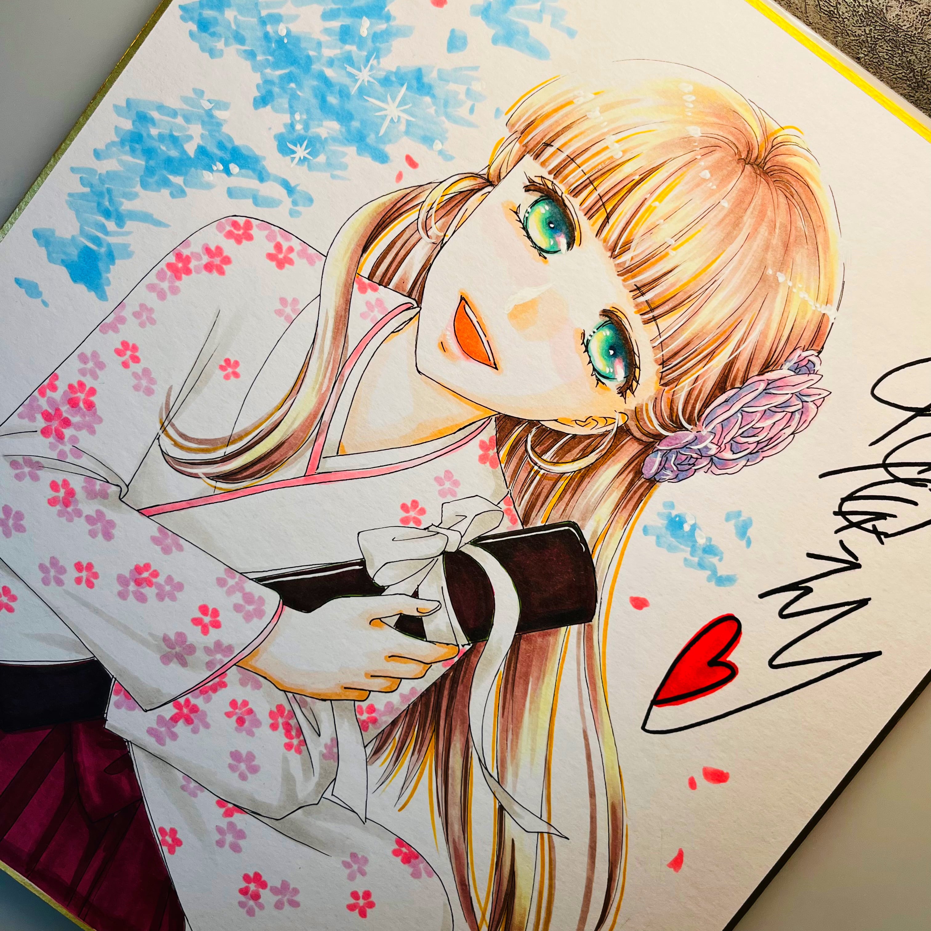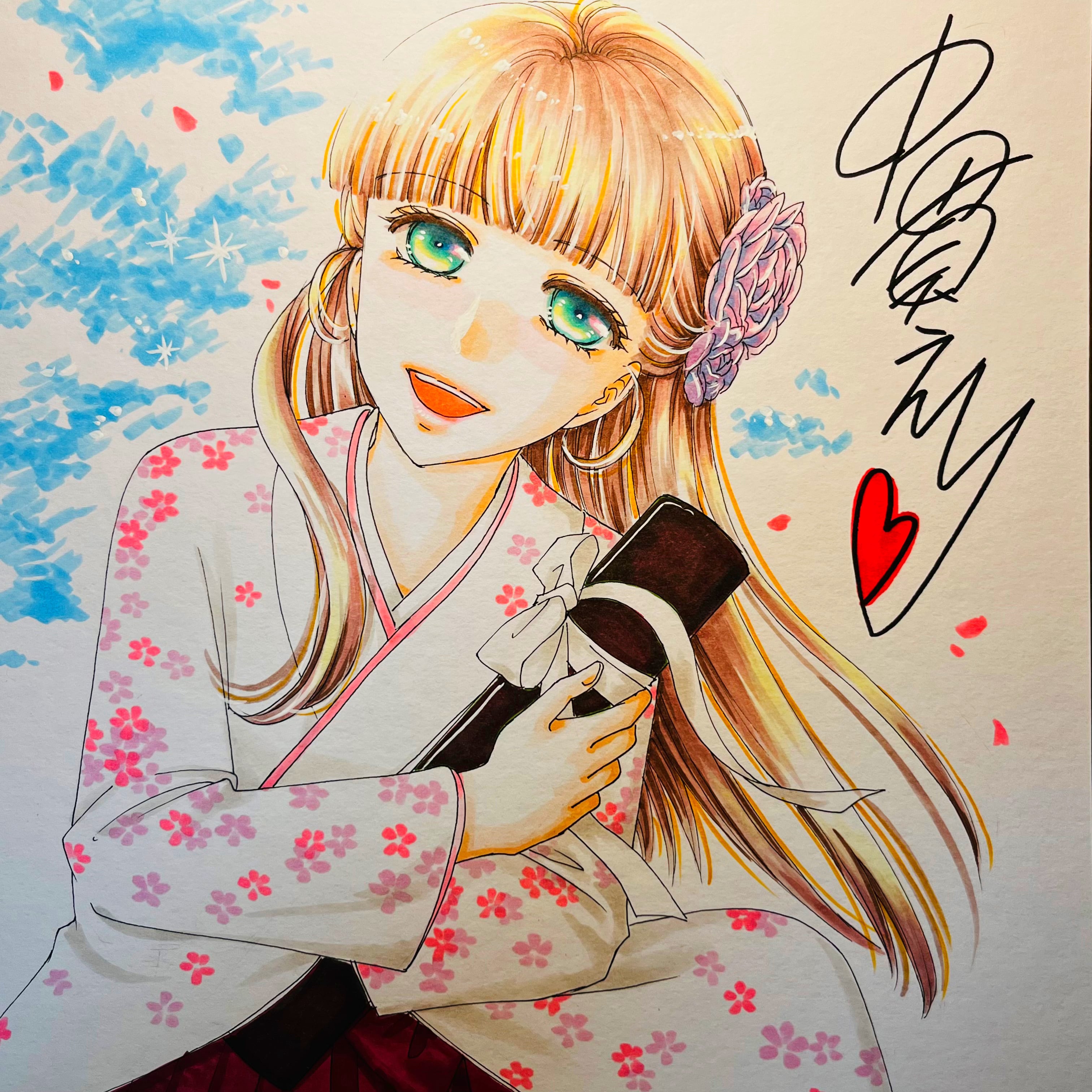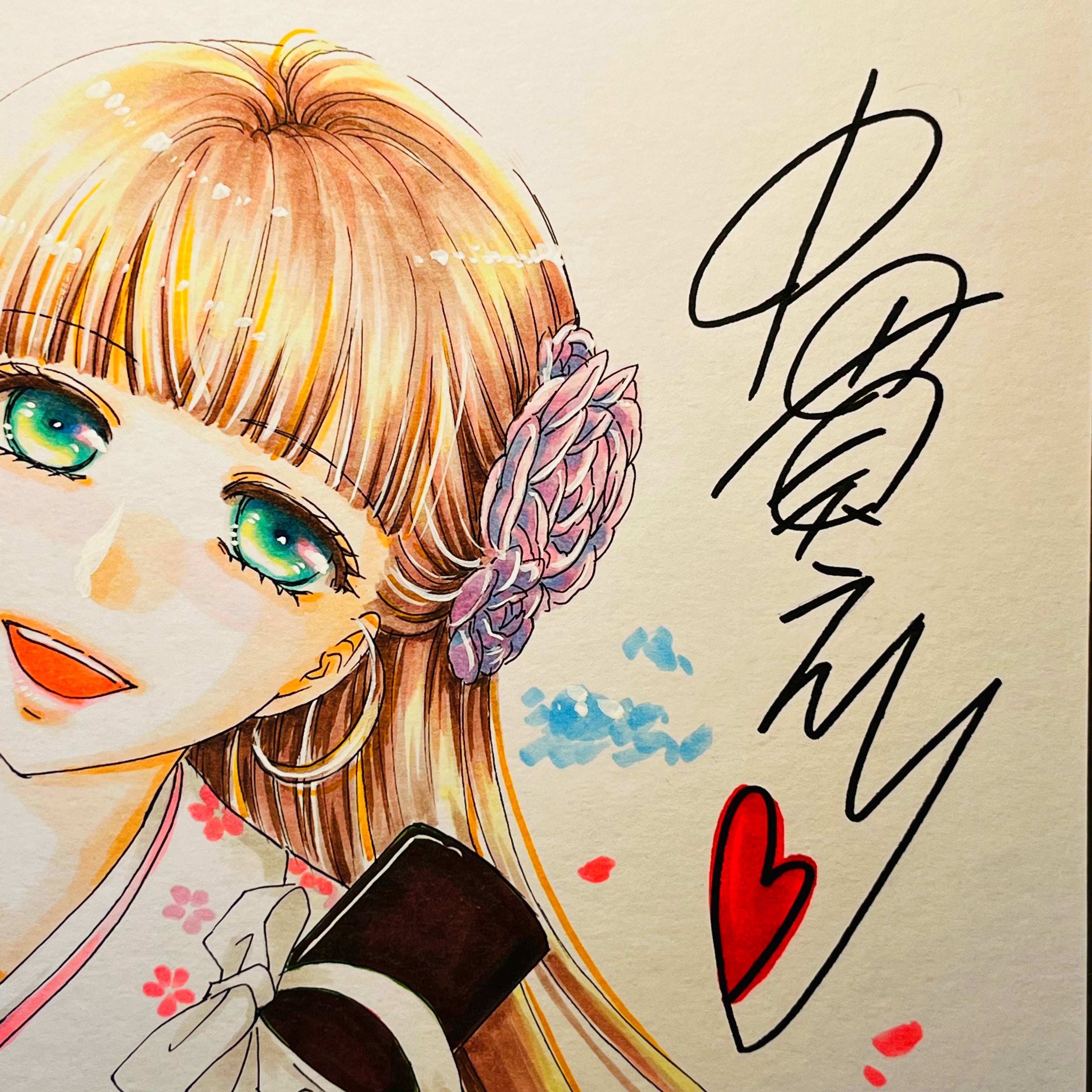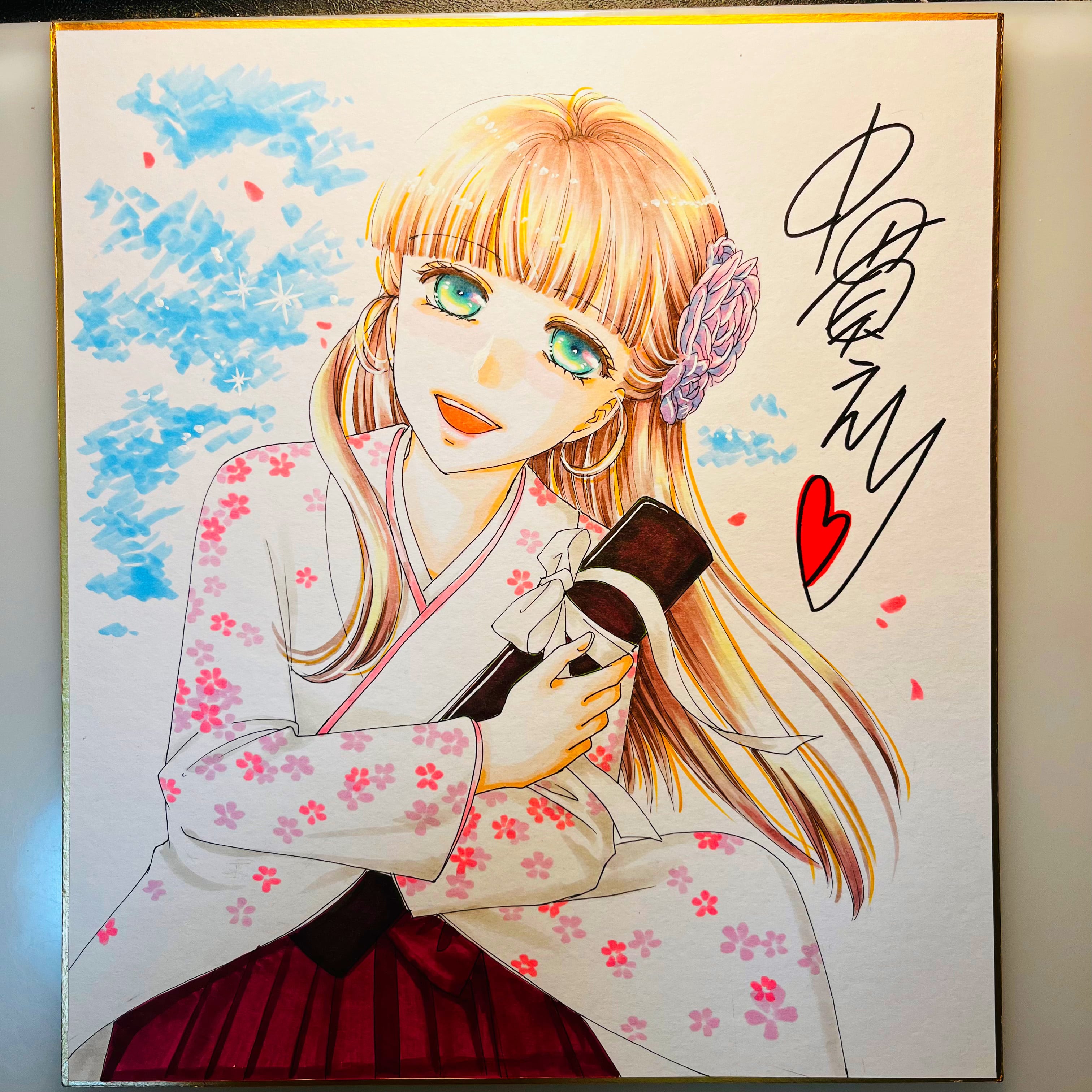 直筆イラスト色紙 麦子(卒業証書)